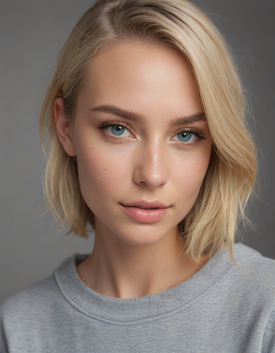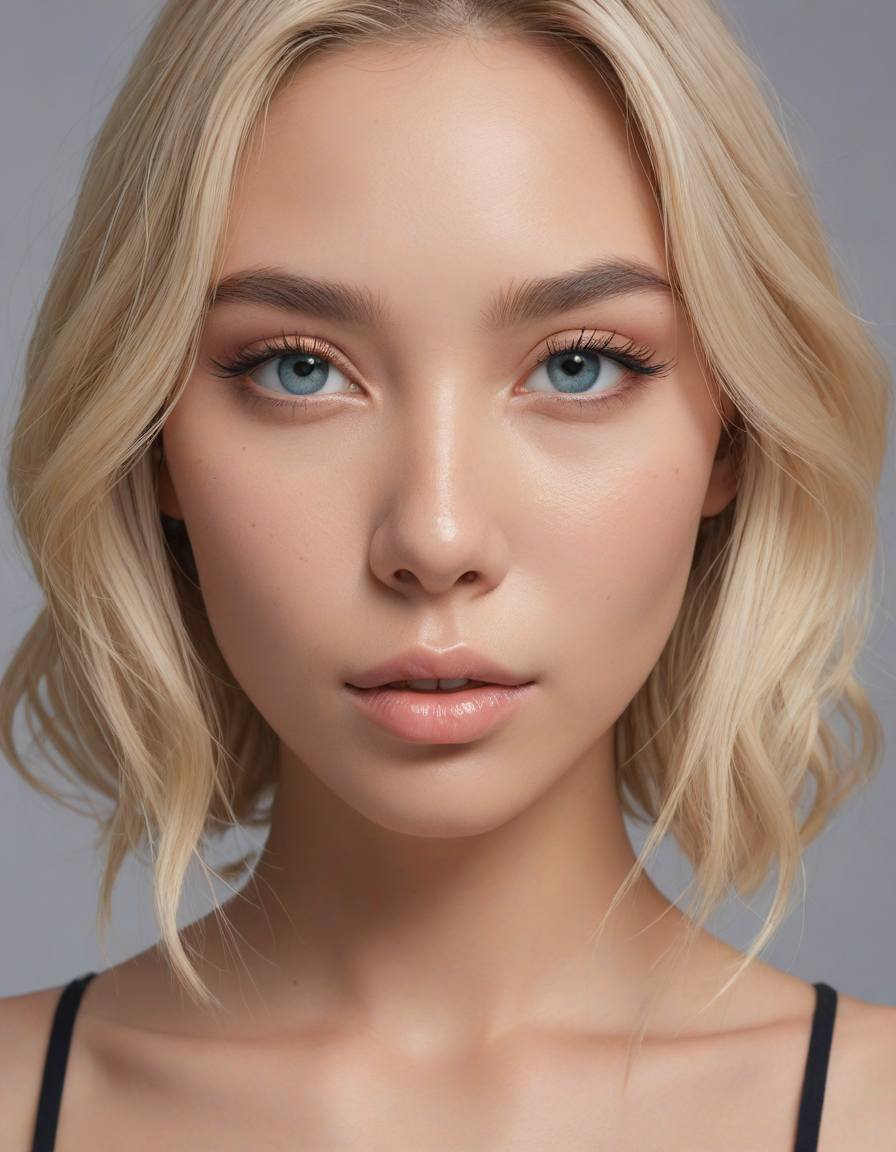 life of the party, oval face shape, almond-shaped eyes, voluminous lashes, slightly arched eyebrows, narrow nasal bridge, rounded nose tip, symmetrical nostrils, full lips, pronounced cupid's bow, slightly fuller lower lip, defined cheekbones, rounded chin, smooth complexion, softly contoured jawline, balanced facial proportions, symmetrical features, gently curved eyelids, soft brow ridge, harmonious cheek to jawline transition, subtle philtrum, delicate ear lobes, straight blonde hair, clear skin, hooded eyelids, light pink lip color, slightly pouty expression, casual pose with hand on face, slight head tilt, indoor lighting, Light blue irises, Medium-thickness eyebrows, Softly angled eyebrows, A hint of freckles across the nose and cheeks, Natural makeup, Gentle frown lines between the eyebrows, Soft nasolabial folds, Smooth forehead, Subtle dimple on the chin, Clear facial contour without distinct shadows, Even skin tone with a hint of natural pink undertones, Slightly rosy cheeks, Tapered jawline, Fine hair texture with gentle waves, Youthful appearance with soft facial features, provocative clothing, slutty clothing, skimpy clothing, revealing clothing, seductive clothing, coquettish clothing, coquettish, seductive, taboo, sheer clothing,