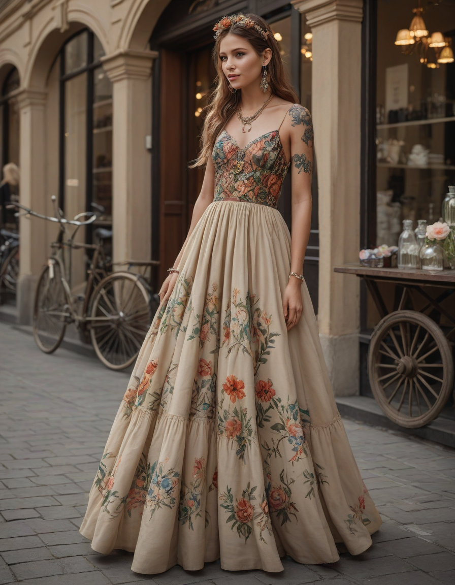 life of the party, bohemian, "free spirit", jewelry, tattoo, spring dress, Wide Skirt, wide ballgown hem, a line skirt, petticoat skirt,