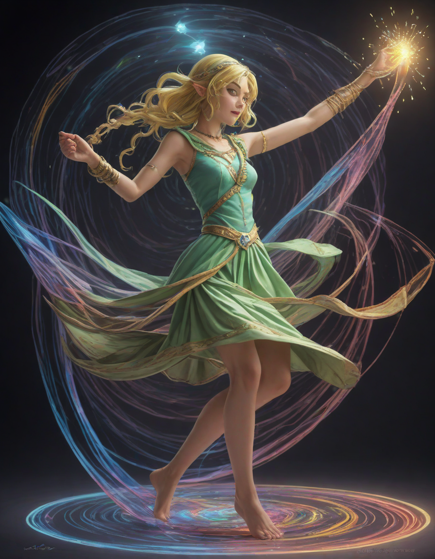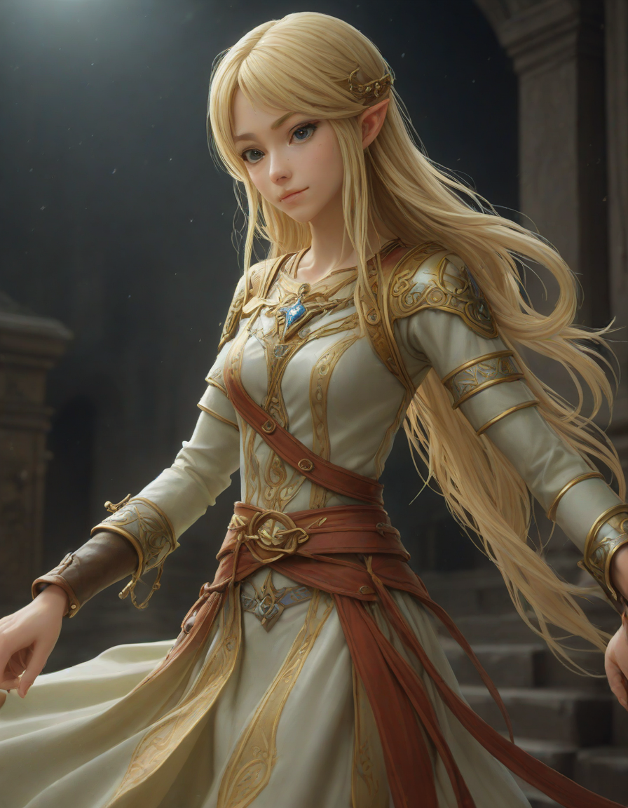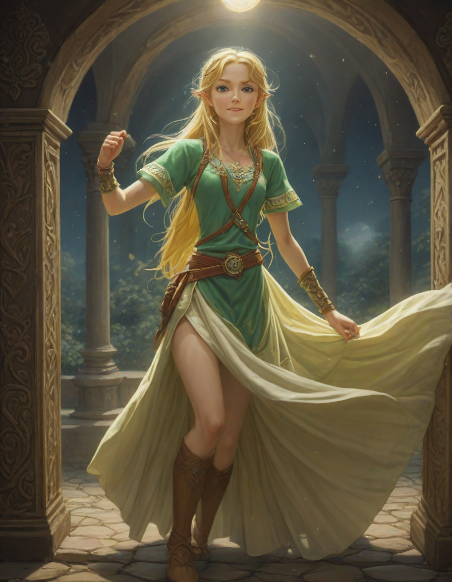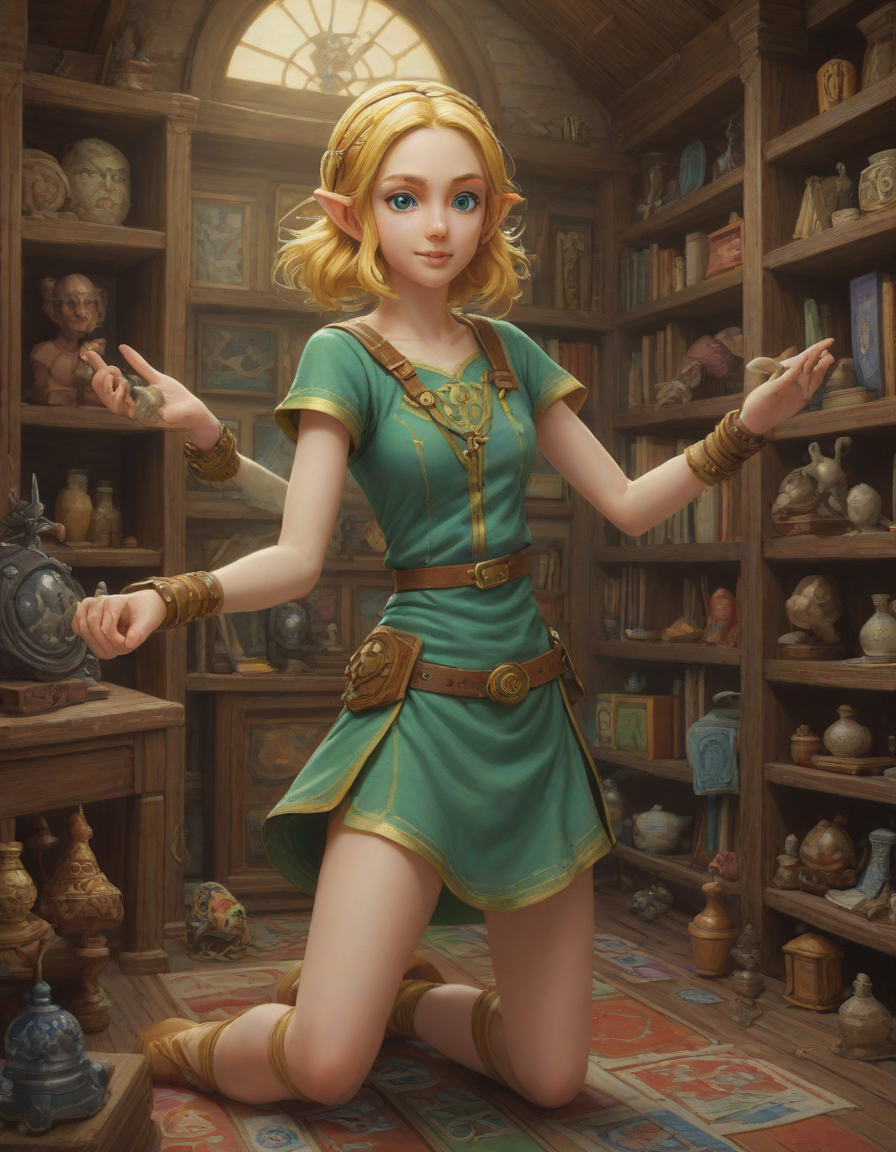 sighing in relief, beaming with pride, the legend of Zelda, immersed in her hobby, dancing with joy