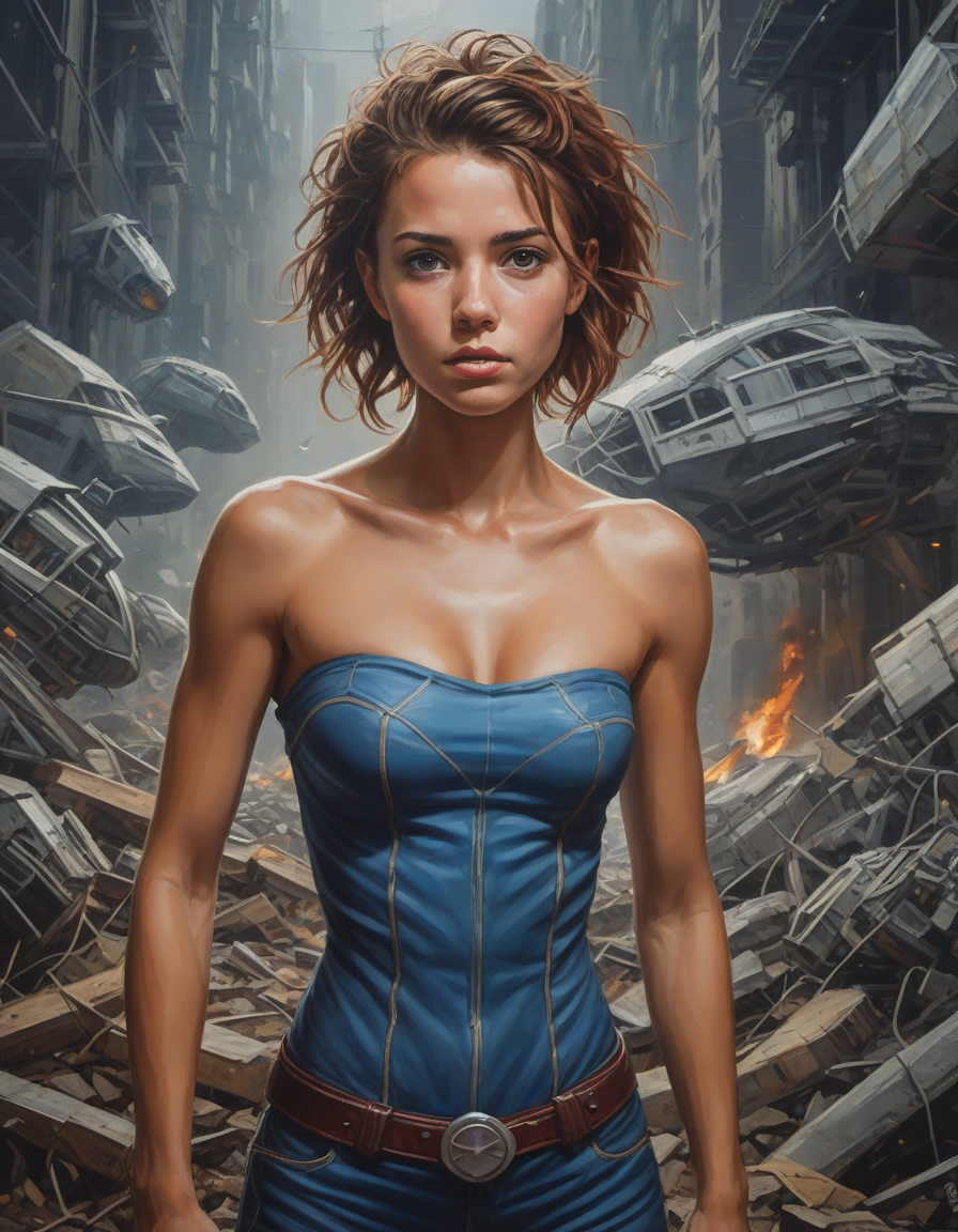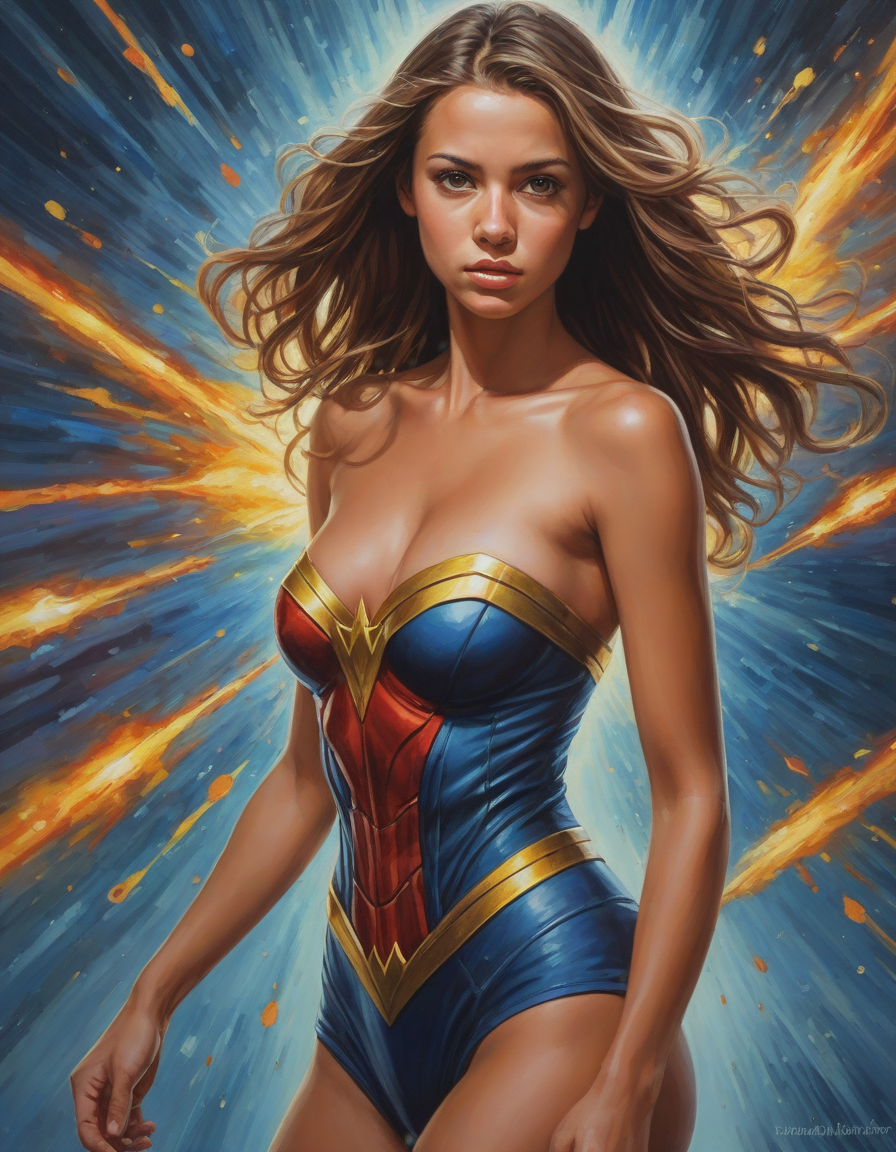 Strapless top, strapless, no straps, super hero, unshakable determination, oil painting