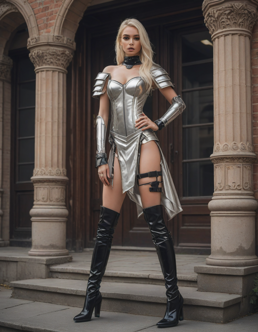 This visualization retains the essence of our previous description, now enhanced by a pose that speaks volumes of her confidence and the vibrant spirit of the e-girl aesthetic. It captures not just the photorealistic image of a young woman in the throes of digital age culture but also the bold statement of identity and self-expression that defines her at this significant moment in her life., Holding a sword in both hands in a confident pose, detailed grip, detailed fuller, detailed pommel, detailed blade, detailed edge, , brick wall -> great window view, wearing complete set of armor, wearing full armor, Wearing chest armor, wearing leg armor, wearing feet armor, wearing bracer, wearing pauldrons, Wearing helmet, Wearing breastplate, Wearing gauntlets, Wearing greaves, Wearing pauldrons, Wearing vambraces, Wearing cuisses, Wearing sabatons, Wearing gorget, Wearing tassets, Wearing bracers, Wearing cuirass, Wearing faulds, Wearing plackart, Wearing spaulders, Wearing besagews