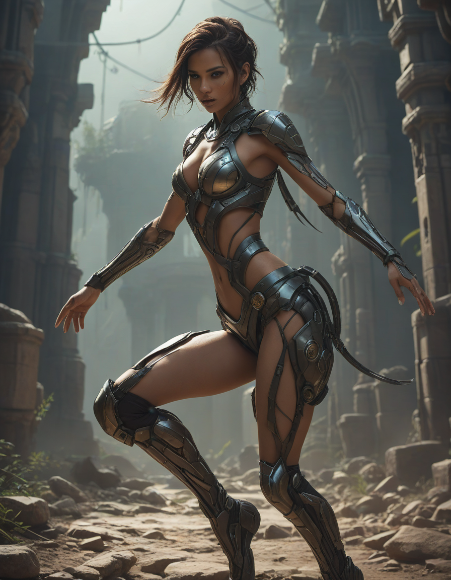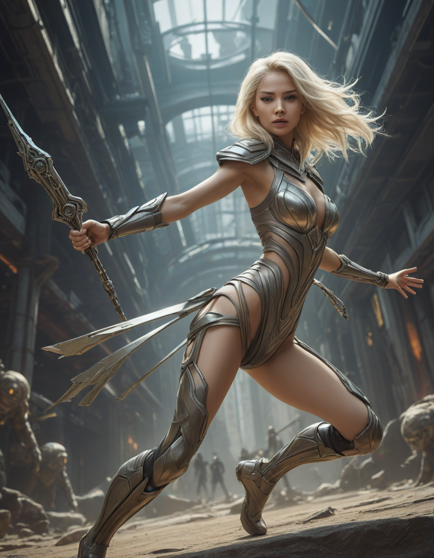 highly stylized, artistic, dynamic pose, action shot, fantasy setting, magical, futuristic, sci-fi