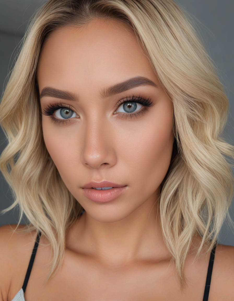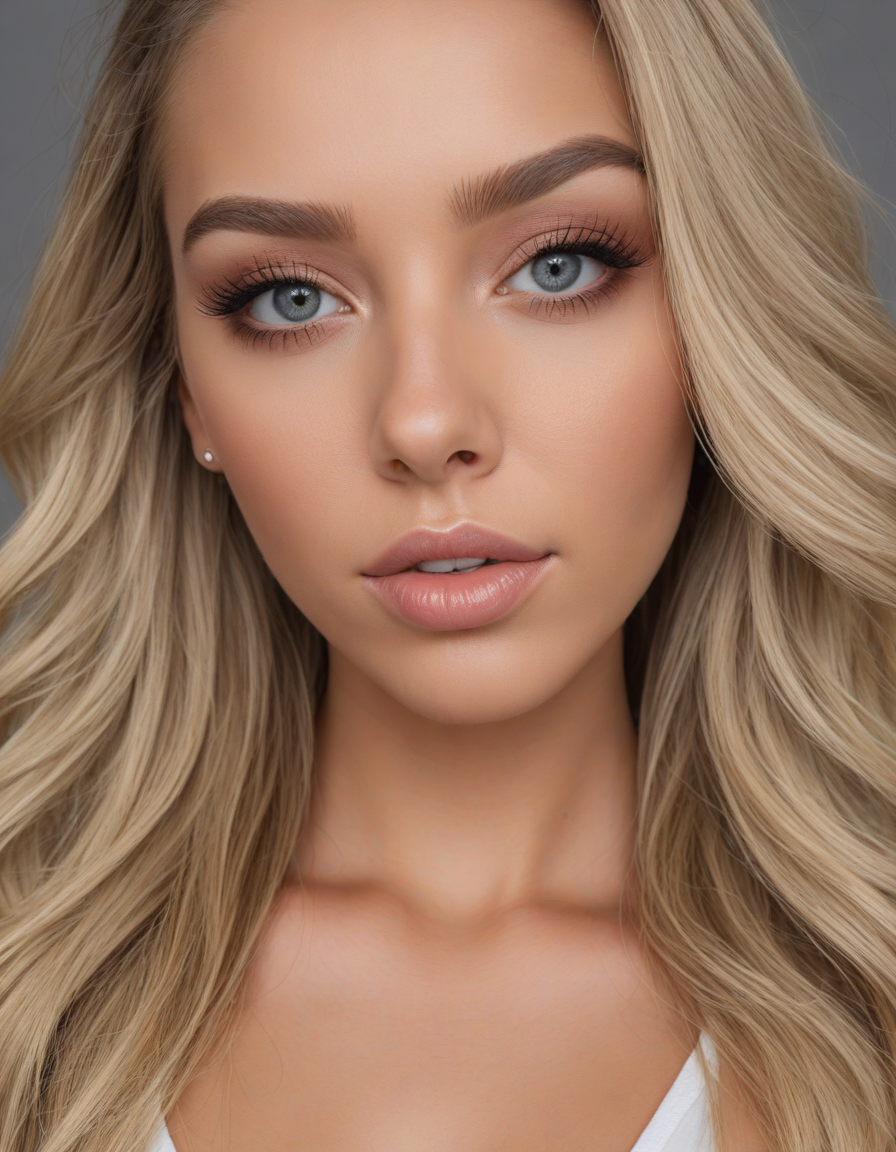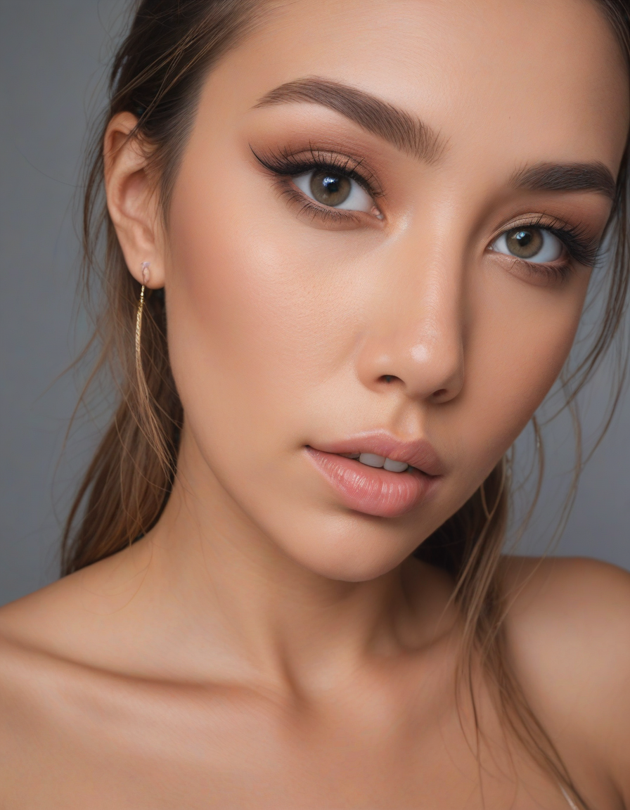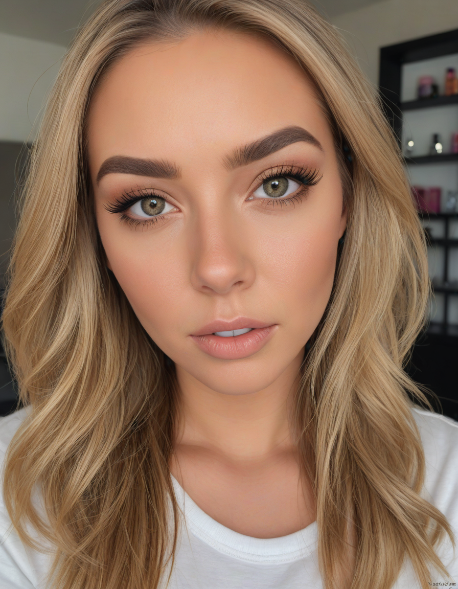 18yo, 18 year old, Glamorous full-coverage foundation, high-gloss lip finish, dramatic eyelash extensions, deep contouring, bronzed skin glow, smoky eye effect, nude lip shades, defined eyebrow arches, shimmering eyeshadow, luxurious false lashes, precision lip contouring, radiant cheek highlight, voluminous hair effect in makeup, plump lip enhancement, classic winged eyeliner, soft-focus skin finish, meticulous face sculpting, sparkling eye accents, meticulous eyebrow definition, vibrant blush placement, sultry eye makeup, flawless skin illusion, high-definition makeup, polished aesthetic finish, celebrity-inspired glamour, egirl makeup, dolly makeup, , passionate, aggressive, eyes wide with wonder