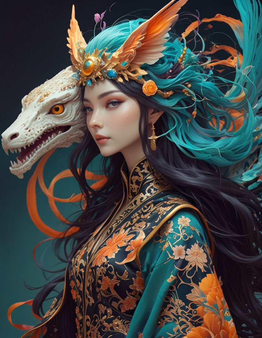 black and white sketch→colorful psychedelic style