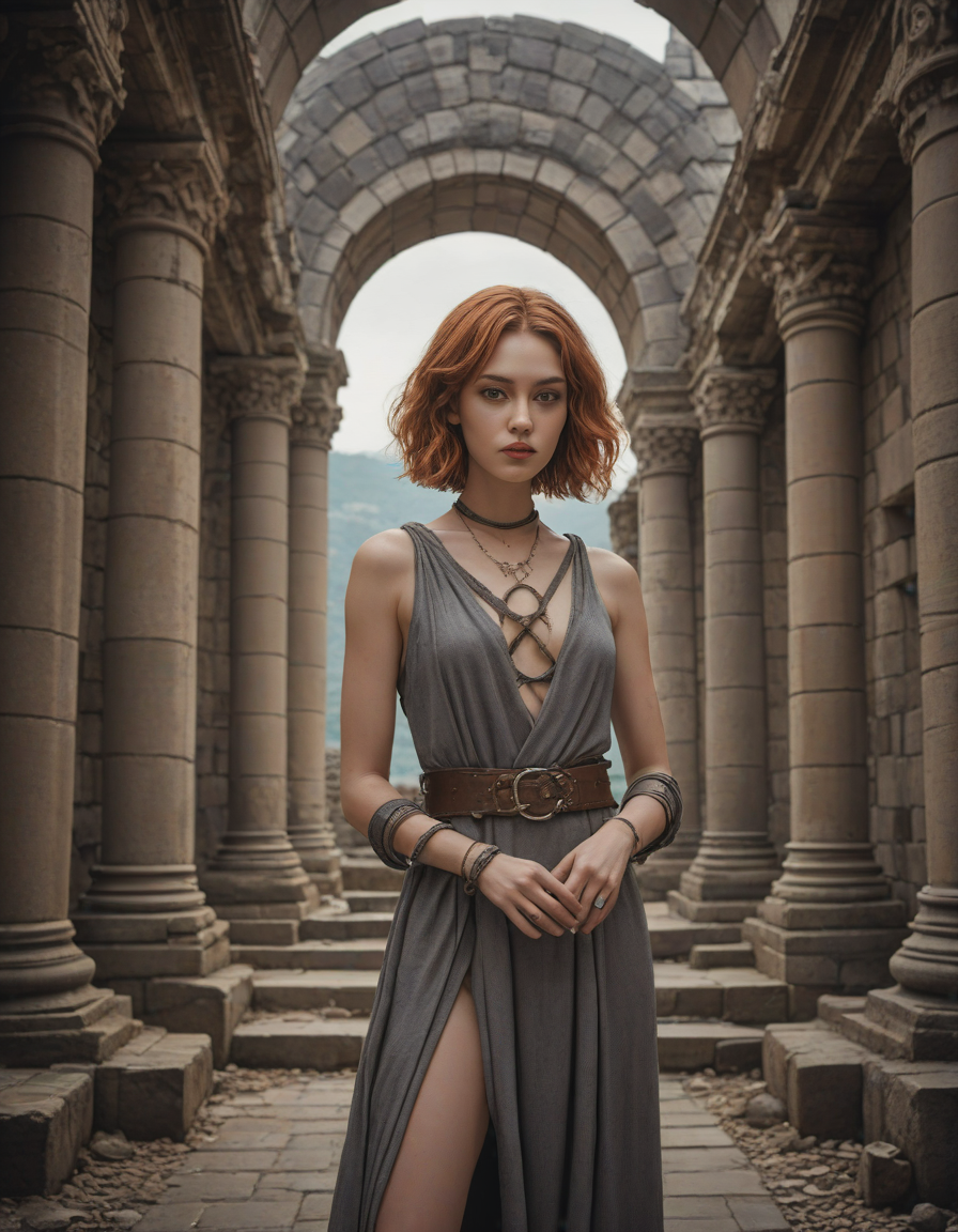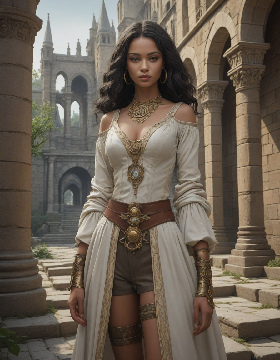 Gothic, but chic as heck, judgemental look, ancient ruins of masonry and carved stone, utopian paradise, rogue dnd