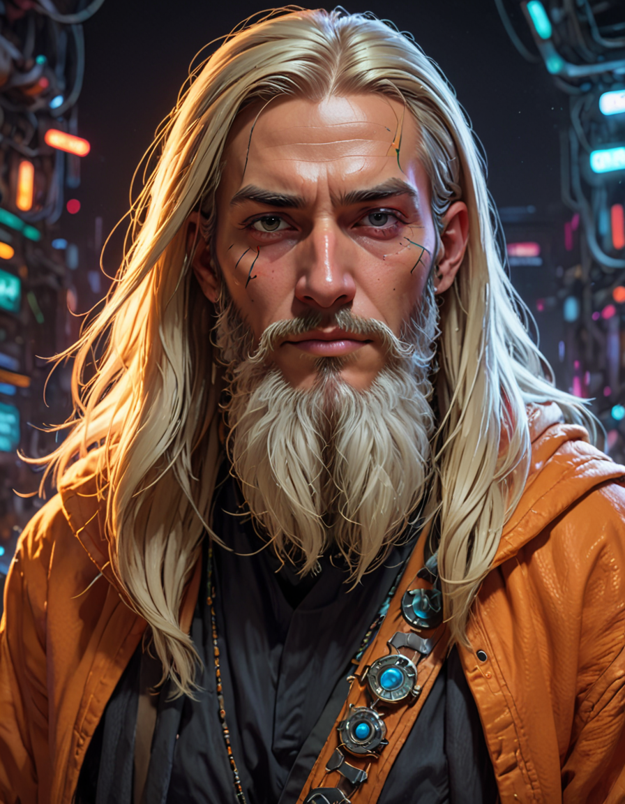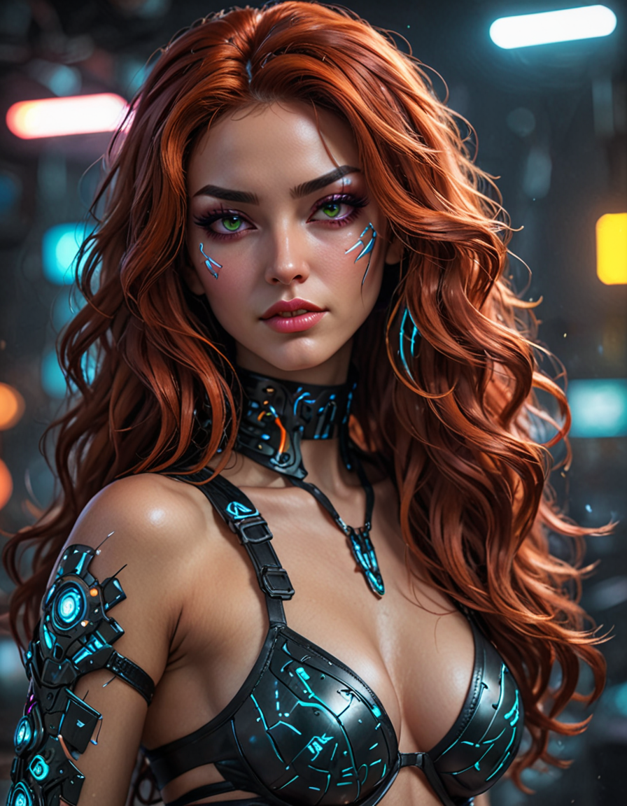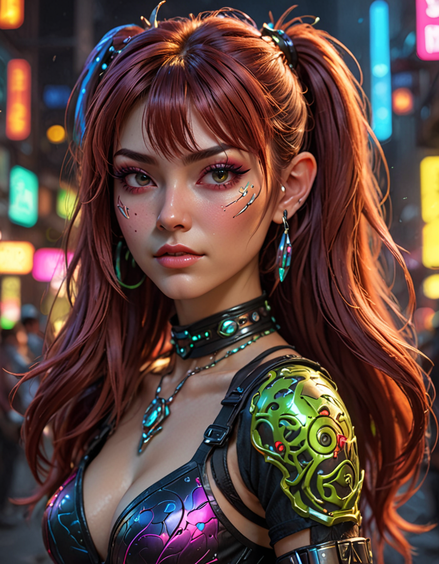 cyberpunk hacker, surrounded by neon lights and holographic screens