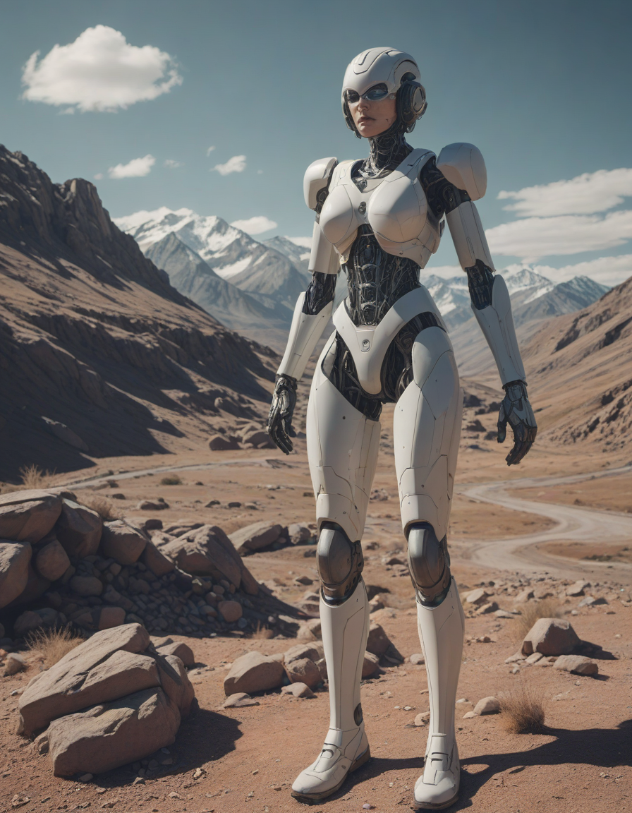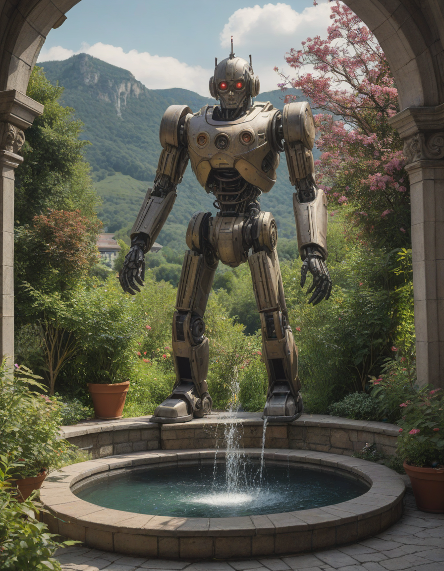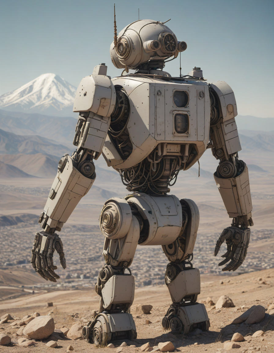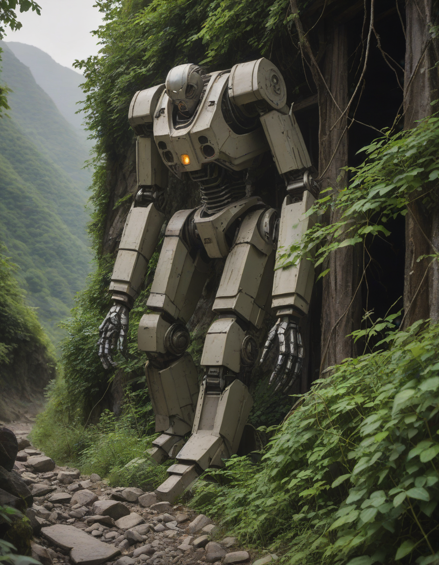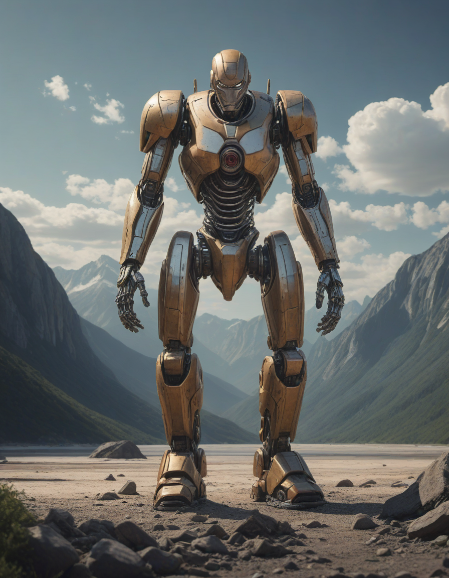 Life, Giant robot looming, they are flushed with embarrassment, Distant mountain landscape, Stretching leisurely, heart skipping a beat, Blinding speed