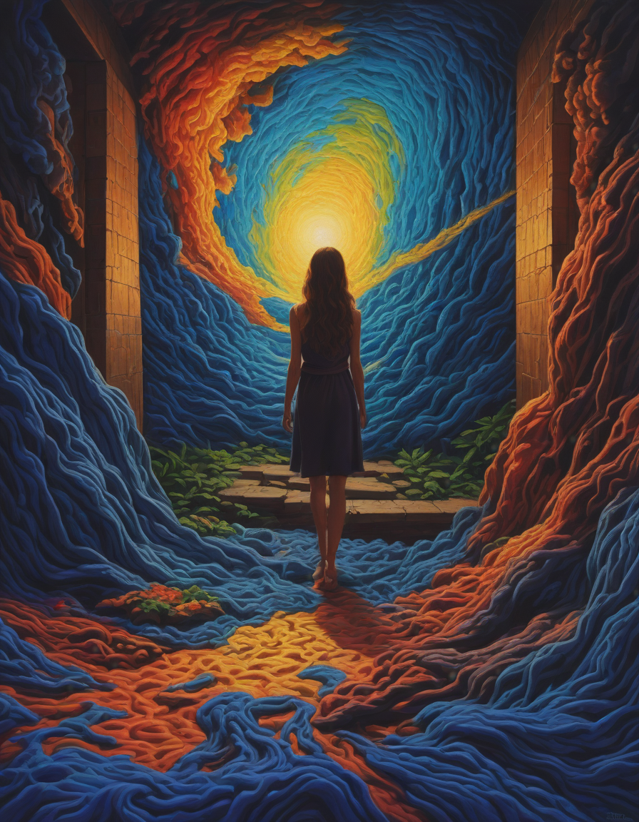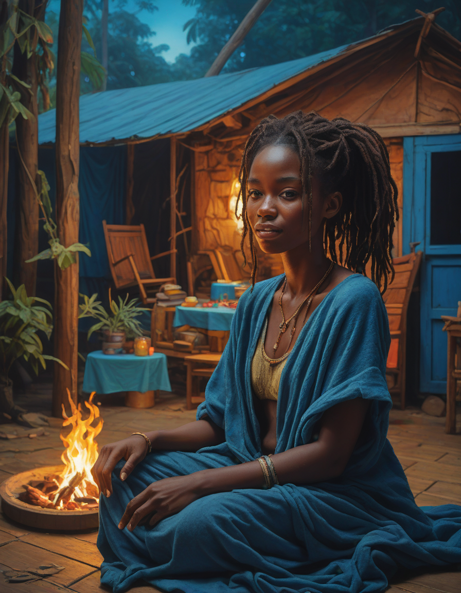 blue, Vivid abstract painting, The fire flickering in the hearth, painting shadows upon the wall, voxels, Oasis in the Amazon, expertly blending, mesmerizing color palette, comfy blanket wrapped tight, giggling with glee