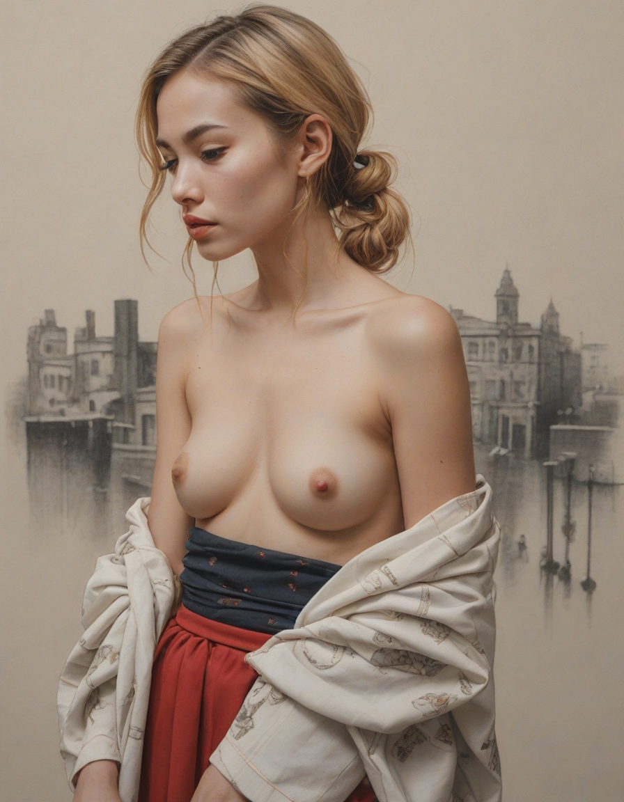Life, muscles flexing, Strapless top, strapless, no straps, all the way up to an 11, they are flushed with embarrassment, charcoal sketches on textured paper, Scarlet lips parted, mexican, pixelated, wearing a traditional kimono, Blinding speed