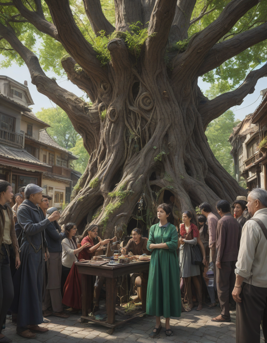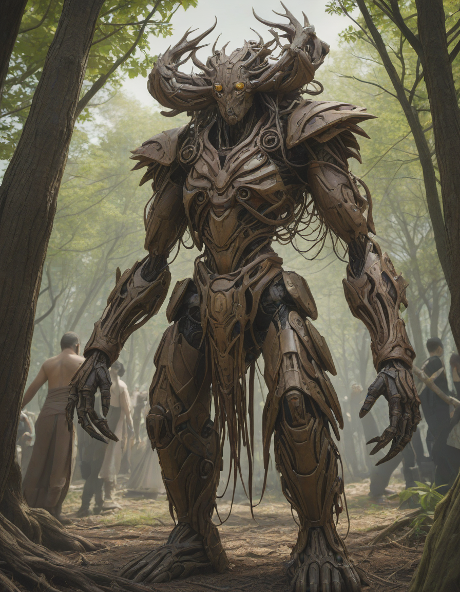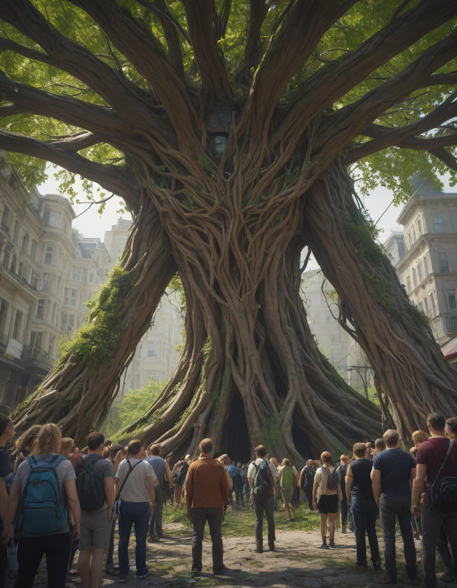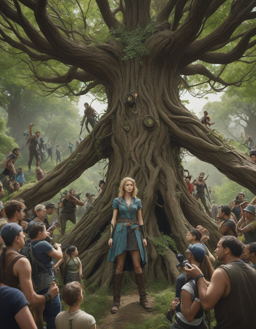 treant, surrounded by people, the camera, (centered on a) wondrous scene