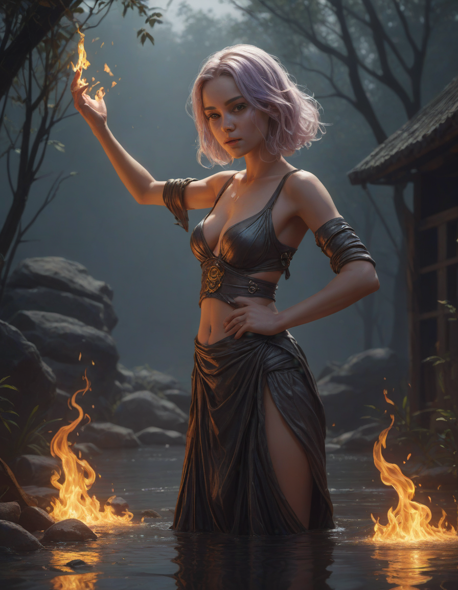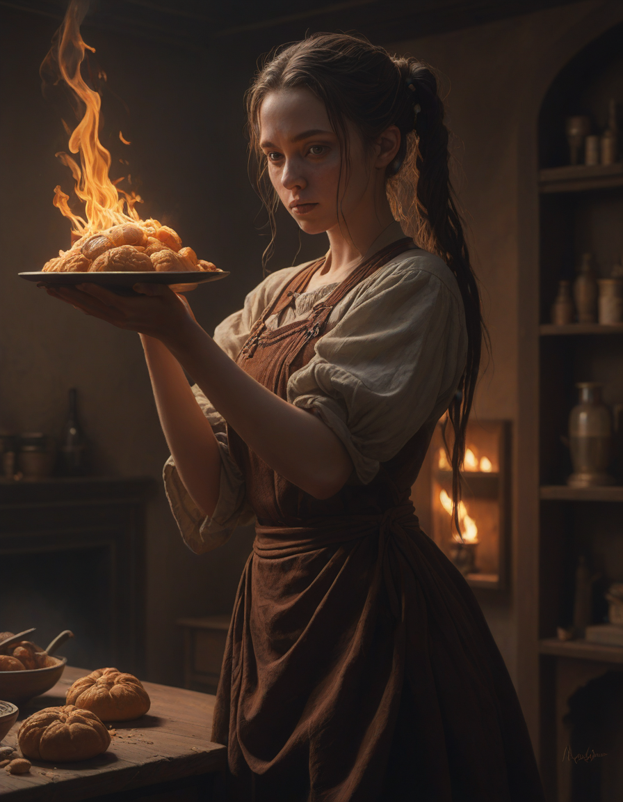 trending on artstation, dancing with joy, furrowed brow, Shadow of desires looming, The fire flickering in the hearth, painting shadows upon the wall, Resonating with tender emotions, Peering into the void, looking at viewer, dully glowing with internal fires, Unhinged