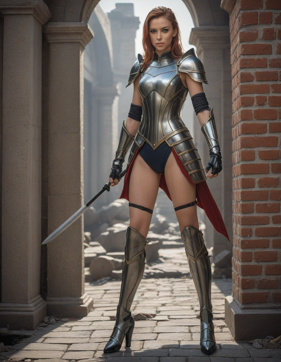 wearing sleeveless leotard, wearing one peice clothing, leotard, sleeveless, , life of the party, elegant, high waist tight overknee stiletto boots, looking at viewer, Wielding a one-handed weapon in both hands, one-handed weapon, weapon, , wearing complete set of armor, wearing full armor, Wearing chest armor, wearing leg armor, wearing feet armor, wearing bracer, wearing pauldrons,, brick wall -> great window view, wearing complete set of armor, wearing full armor, Wearing chest armor, wearing leg armor, wearing feet armor, wearing bracer, wearing pauldrons, Wearing helmet, Wearing breastplate, Wearing gauntlets, Wearing greaves, Wearing pauldrons, Wearing vambraces, Wearing cuisses, Wearing sabatons, Wearing gorget, Wearing tassets, Wearing bracers, Wearing cuirass, Wearing faulds, Wearing plackart, Wearing spaulders, Wearing besagews