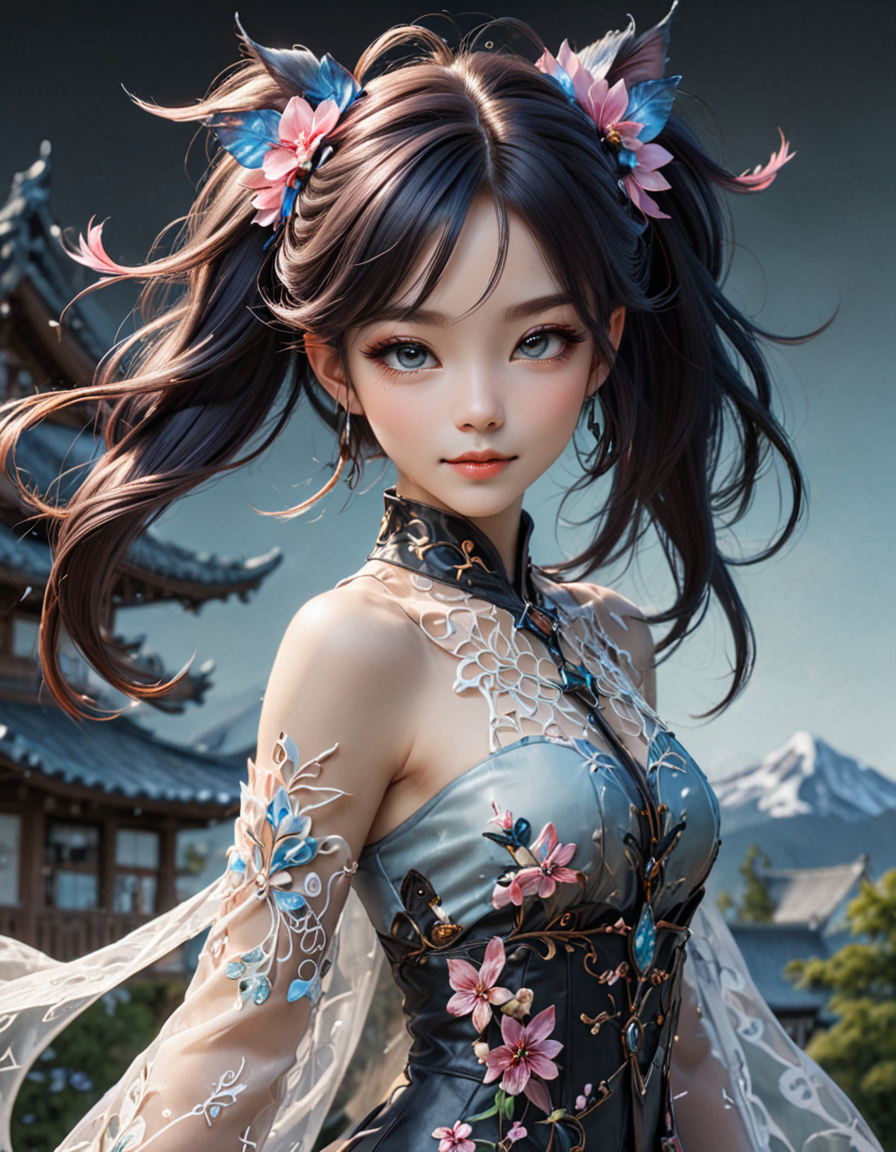 Stern, stoic, unamused expression→Fae, spritely, mischievous expression
