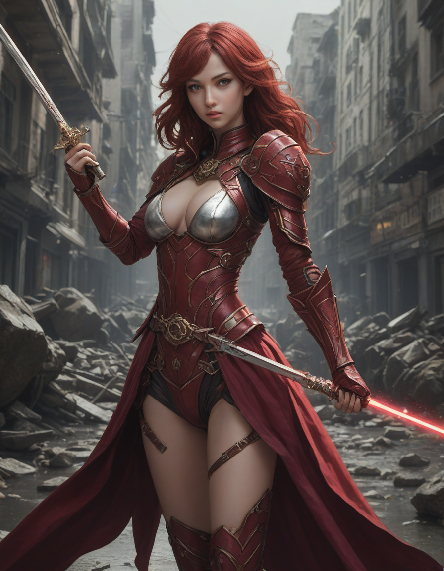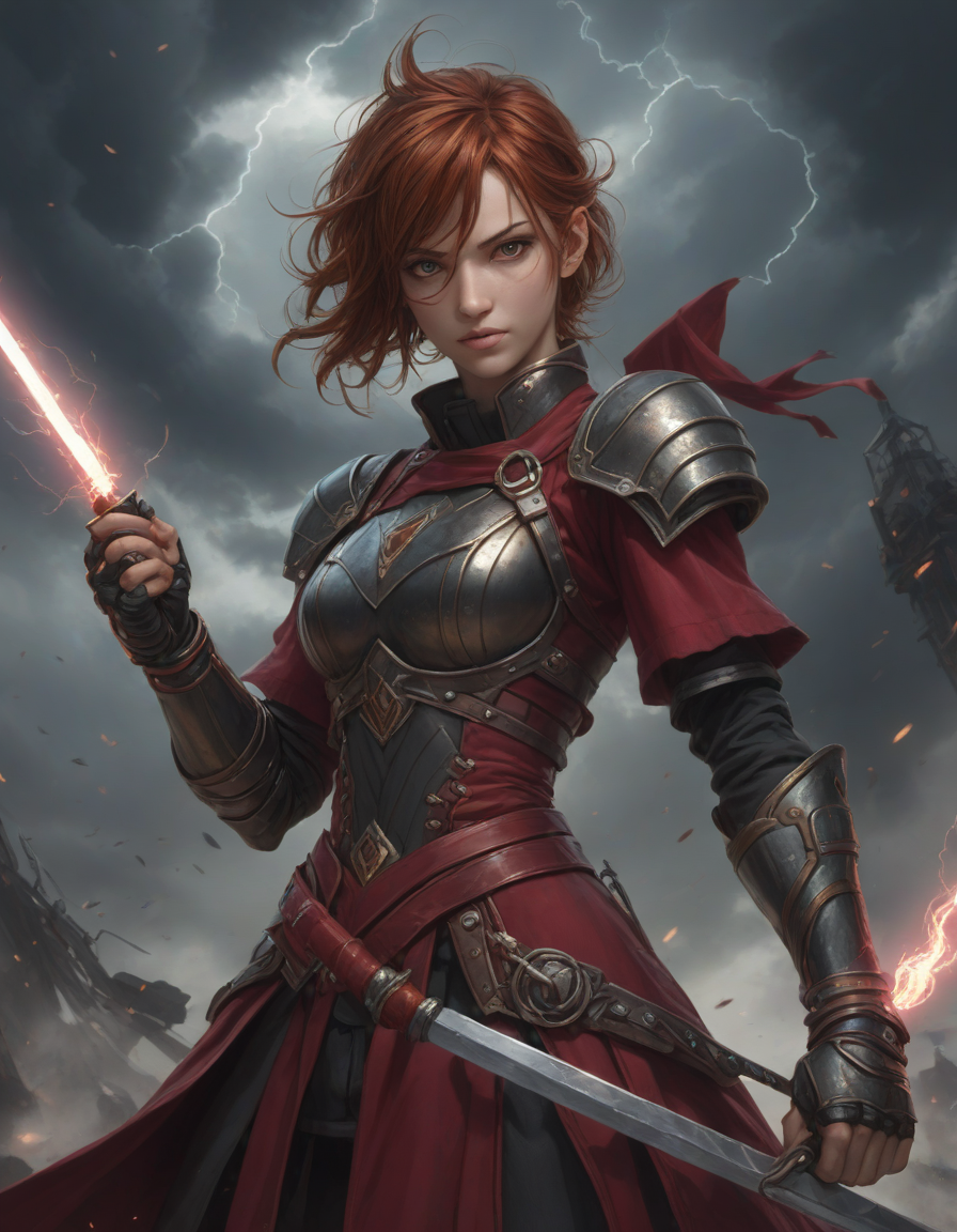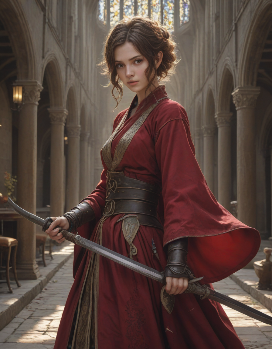 glowing crimson, weilding a one-handed weapon in both hands, one-handed weapon, weapon, , thousand yard stare, Enigmatic, crimson-flecked eyes, anime, comfortably, t-posing, Good posture