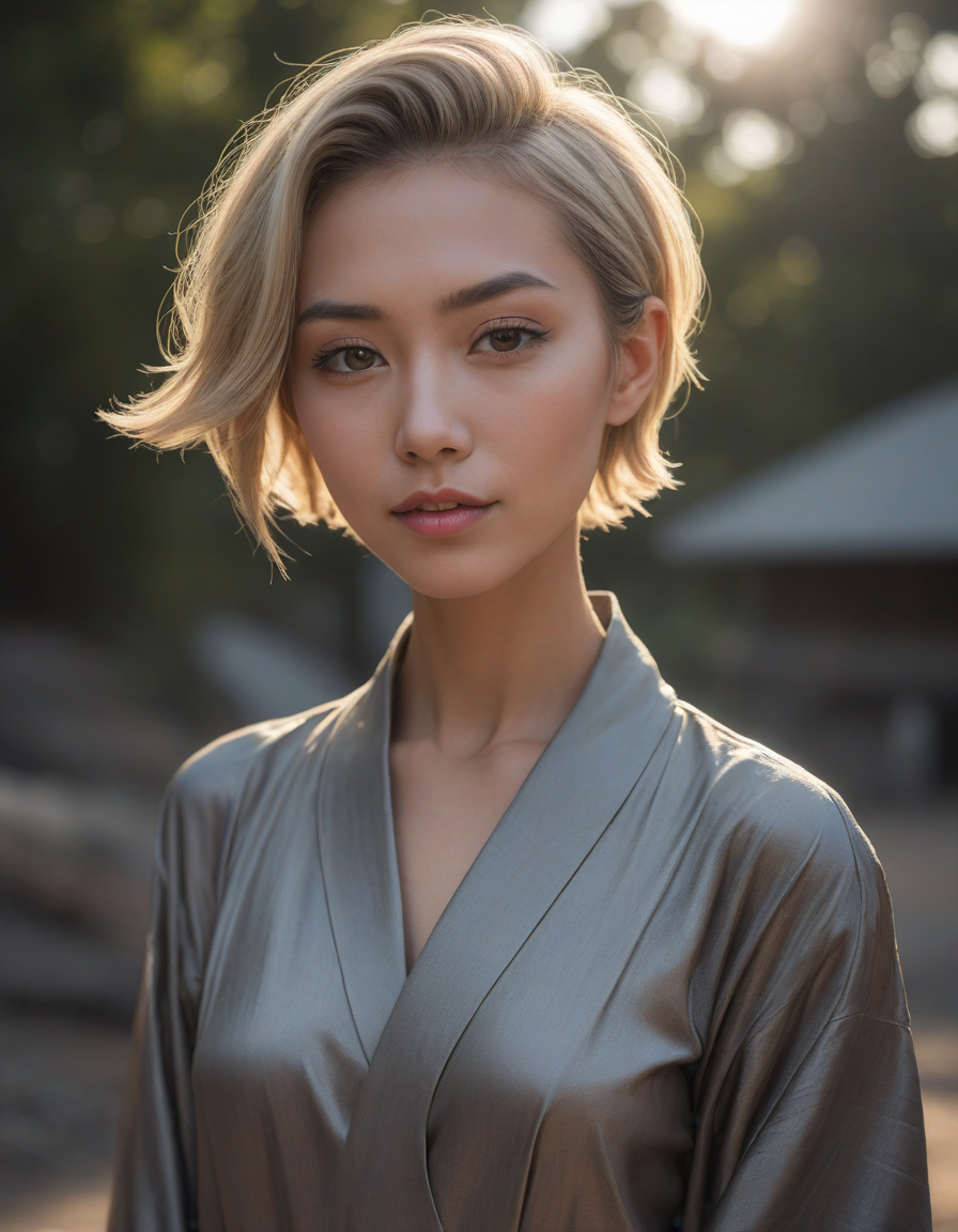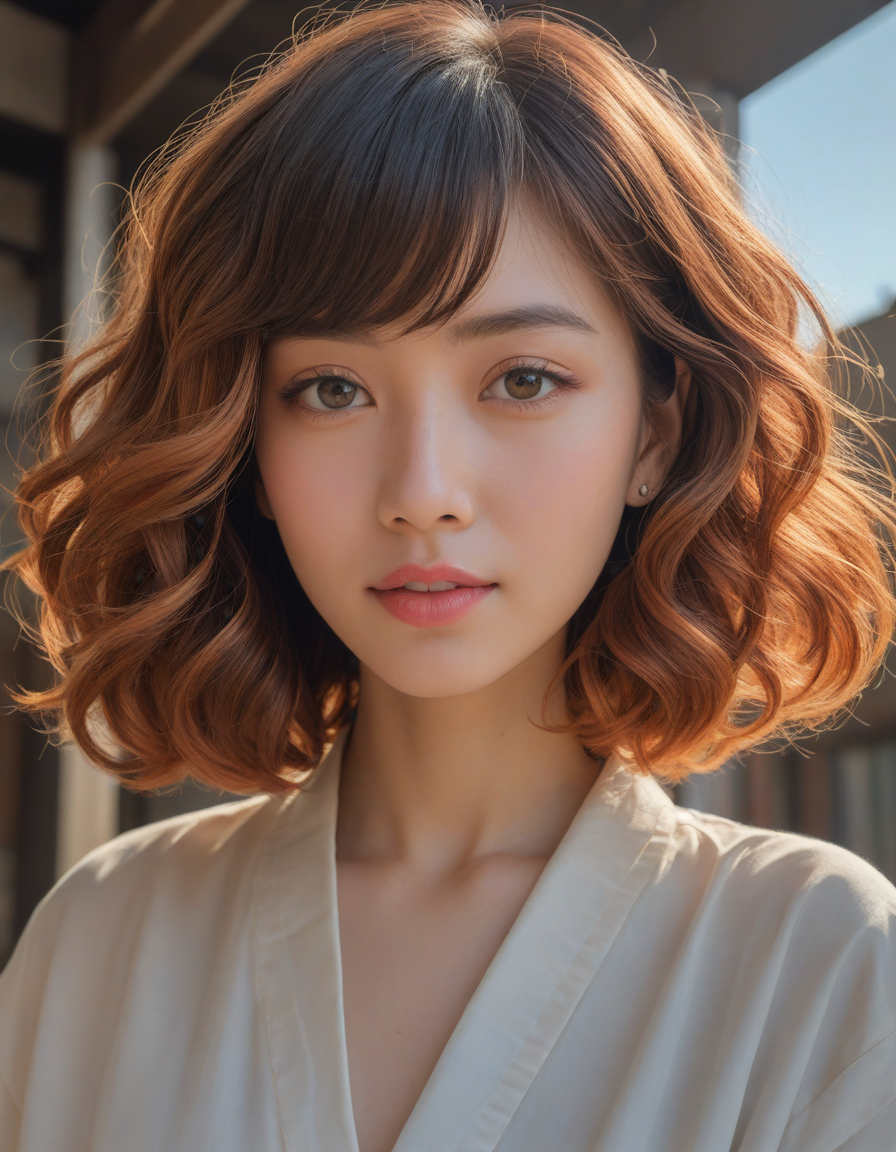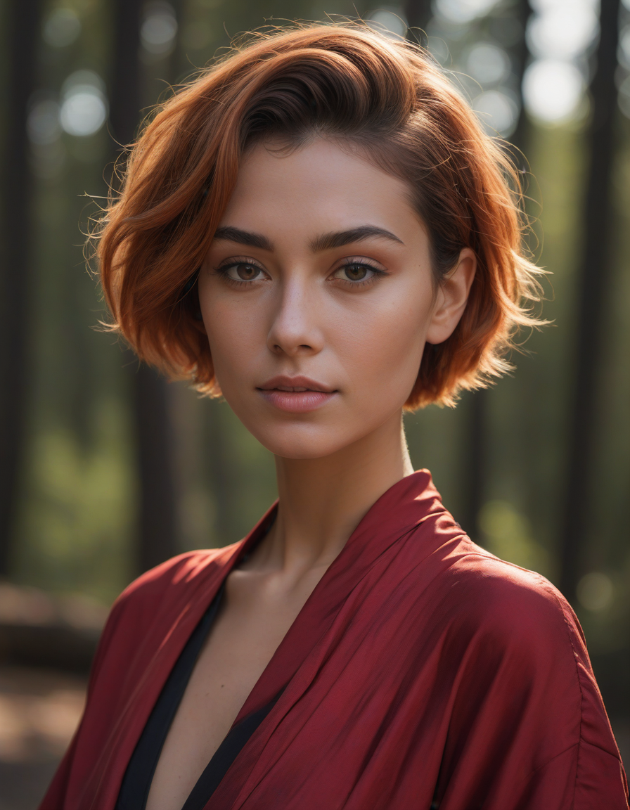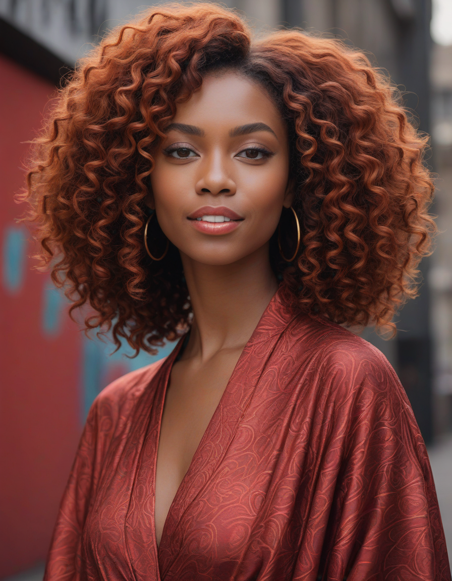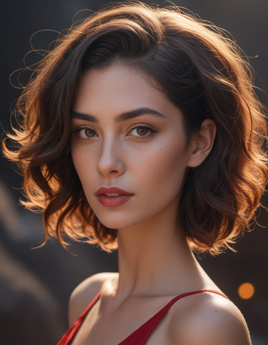 overwhelming excitement, fade haircut, wrapped in silk, looking at viewer, Glistening in moonlight, Glistening lipstick, Warmly Welcoming, enjoying the sunshine outside, glowing red lava