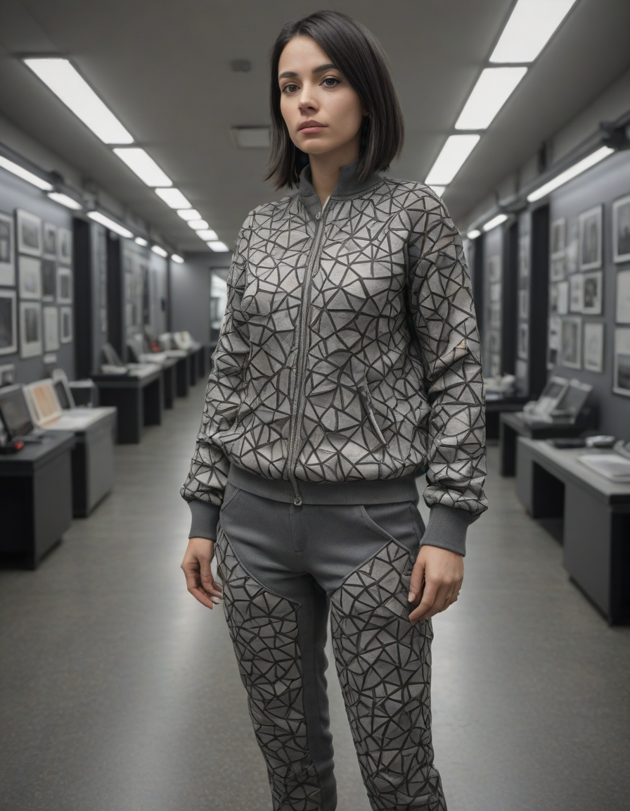 Gaudy sweater, crystal sculpture, Extreme fish eye, in a track suit