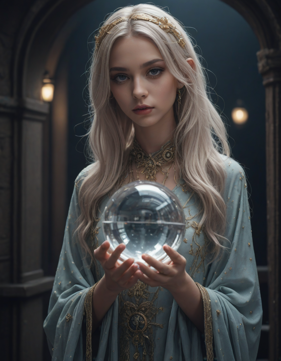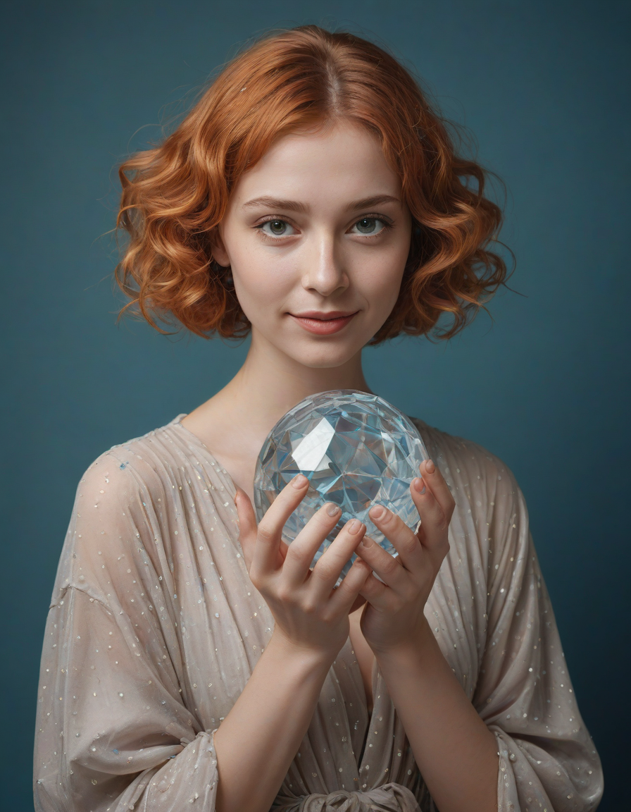laugh, Love, utterly embarrassed, a mysterious hologram, very aesthetic, the feeling of achieving max power, Dazzling as a star, Crystal Ball Photography, Outrageous fashion
