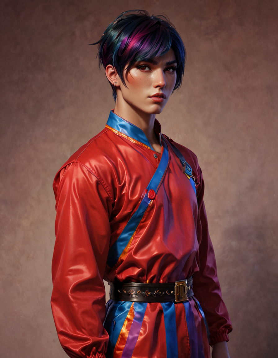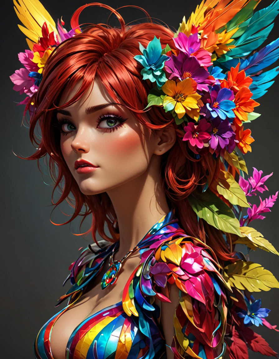 dull monochrome hair, plain ordinary hair color→colorful prismatic hair, vivid rainbow locks
