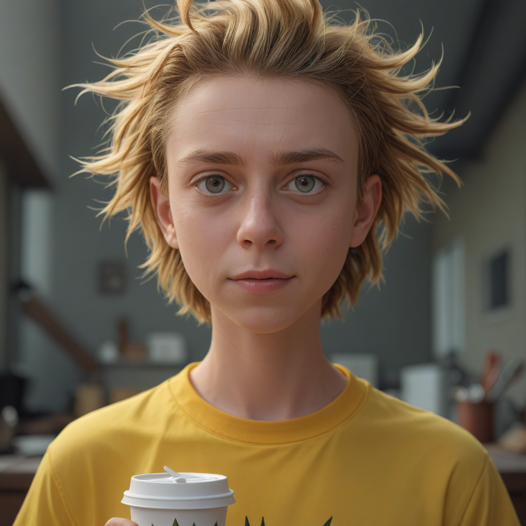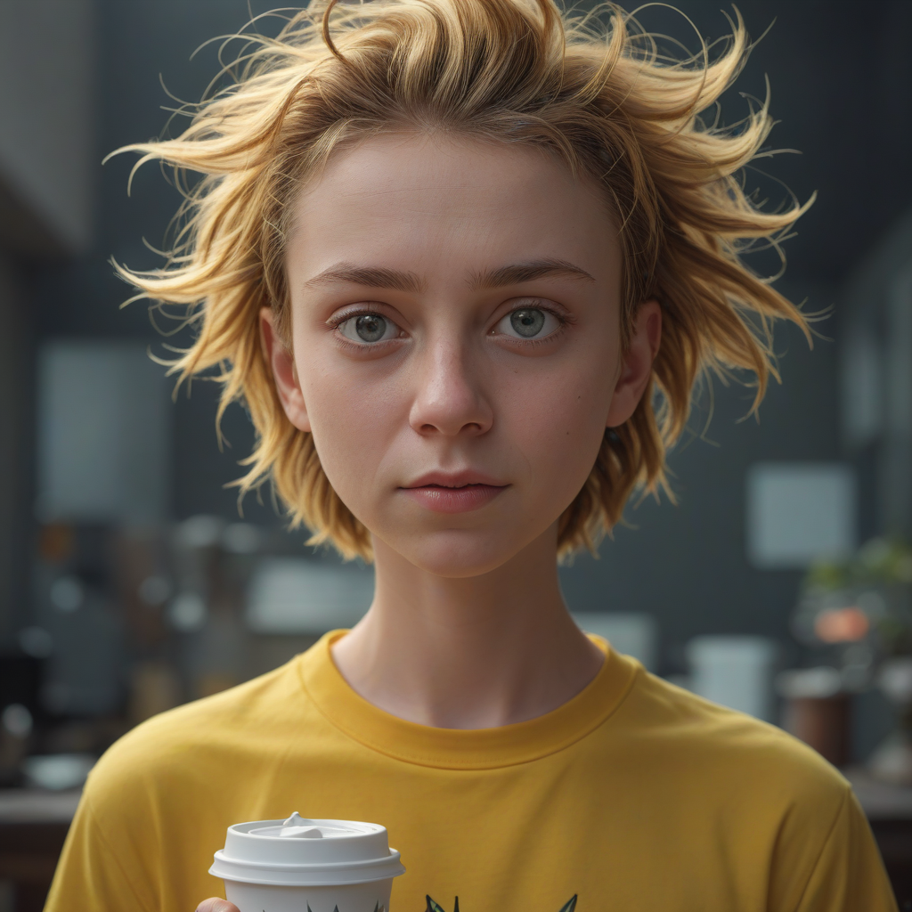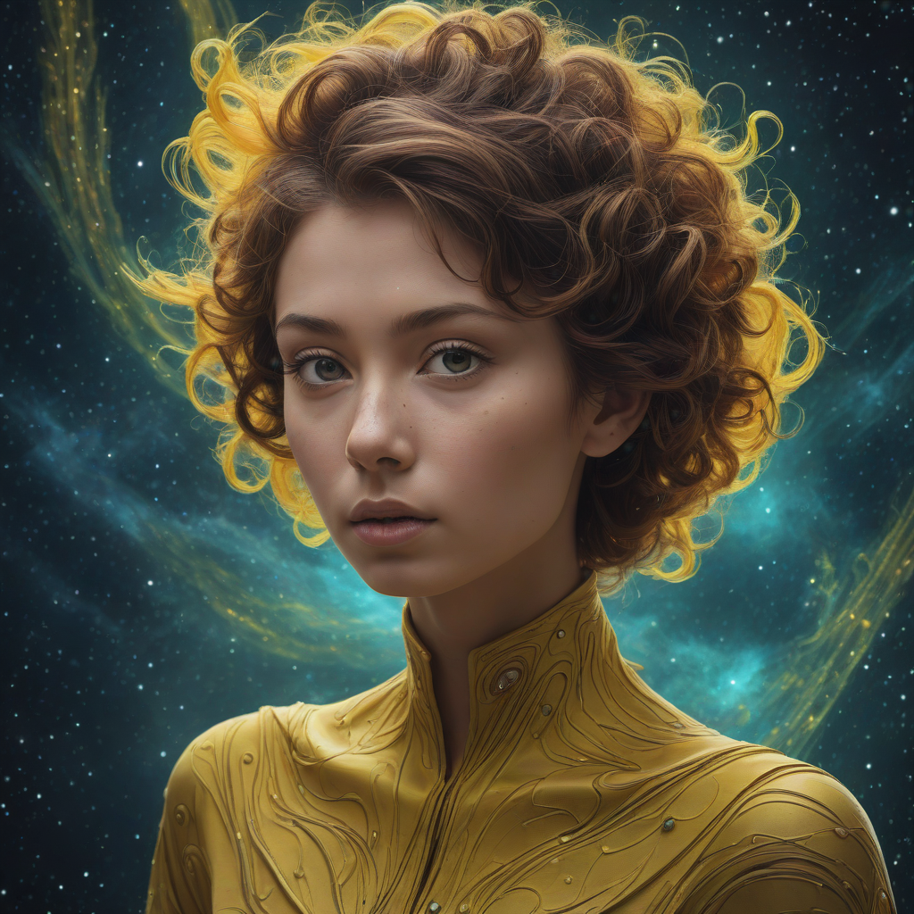 gucci, looking contemplative, attractive, super zoom lens, suspenseful chase scene, Sun-kissed skin, Hapless robot, cooking an extravagant meal, Life, travel-hardened, Galactic nebulas swirling, New Romantic 80s clothing, Cherishing a fluffy kitten