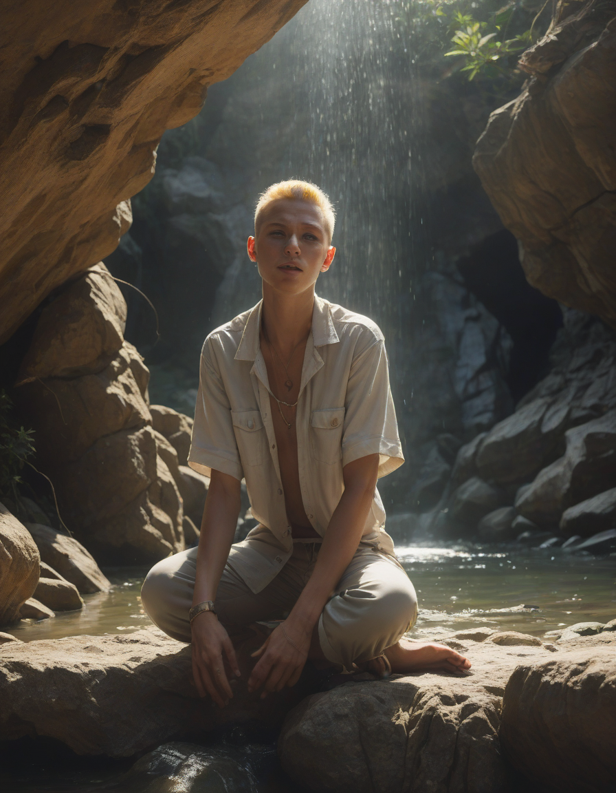 gangsta, furrowed brow, Scrutinizing, pyrotechnics, magical energy swirling around, basking in sunlight