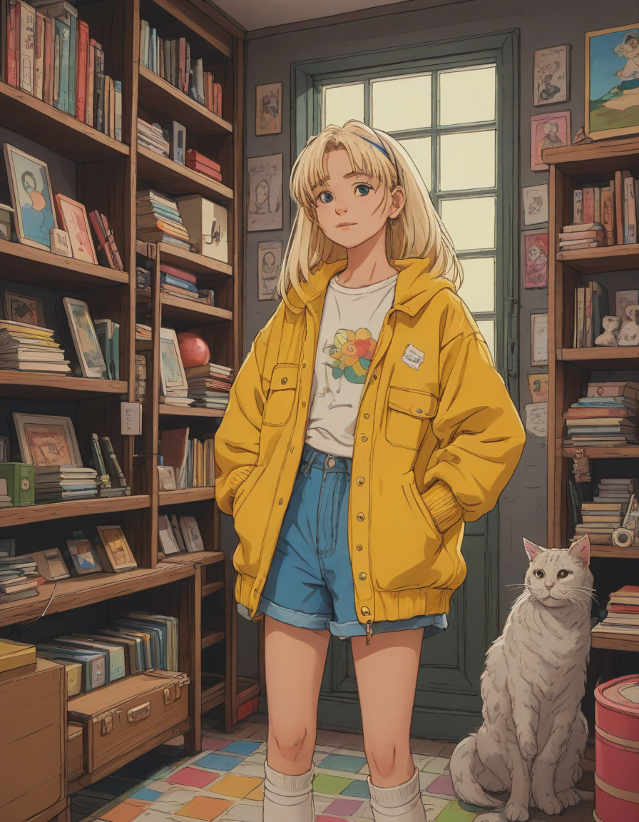 Studio Ghibli style, wearing 90s clothing, Dazzling as a star