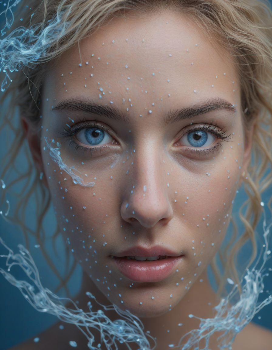 drone photography, Glistening in the light of a thousand candles, light blue colored iris pigment, light blue colored eyes, blue-iris-color, blue-eye-color,, Passionate, electrifying aether spiraling about, Eyes glinting with humor