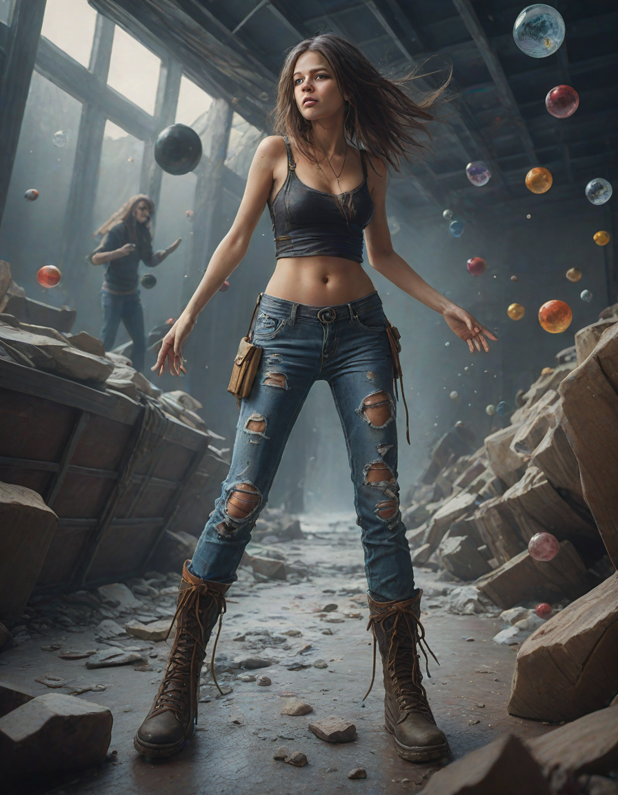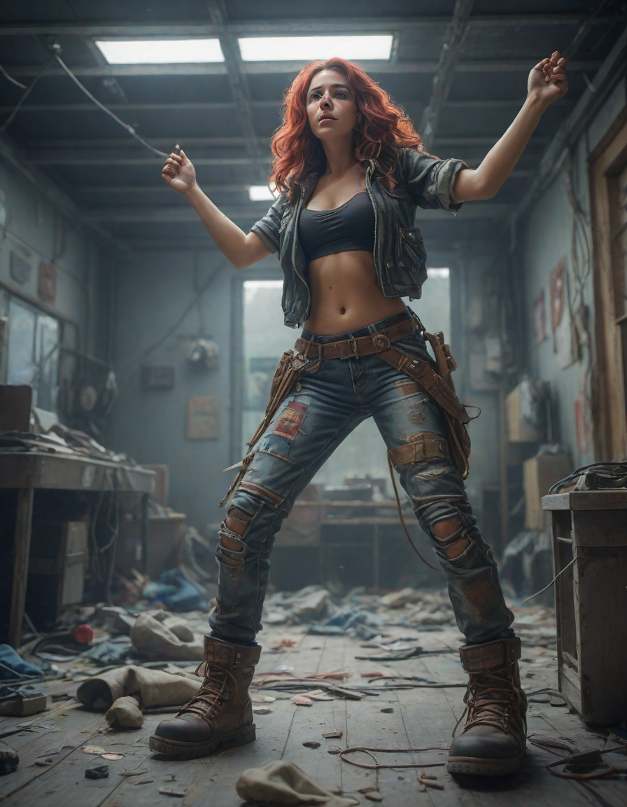 apocalyptic, brunette, cowering in humiliation, all the way up to an 11, dancing ecstatically at a concert, psychedelic trip, Grizzly bear, figurine, clown, Lost, looking in the mirror, abstract bubbles, on a ship, torn jeans and combat boots, sharp focus
