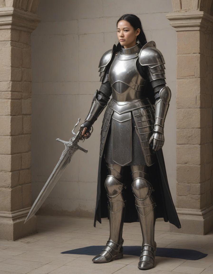 tall woman, wearing complete set of armor, wearing full armor, Wearing chest armor, wearing leg armor, wearing feet armor, wearing bracer, wearing pauldrons, Wearing helmet, Wearing breastplate, Wearing gauntlets, Wearing greaves, Wearing pauldrons, Wearing vambraces, Wearing cuisses, Wearing sabatons, Wearing gorget, Wearing tassets, Wearing bracers, Wearing cuirass, Wearing faulds, Wearing plackart, Wearing spaulders, Wearing besagews