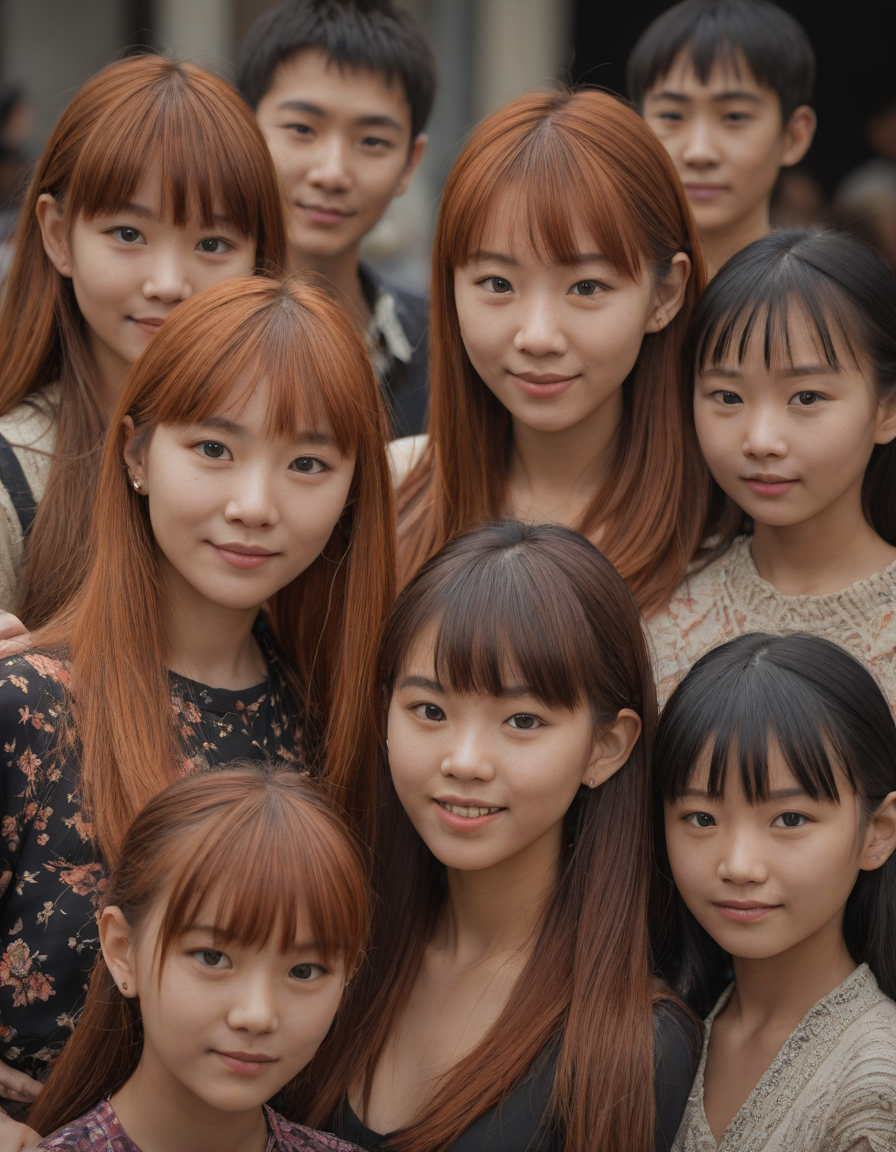 group photo, medium telephoto lens, luminance, Intense gaze, passionate, cheerful, imp