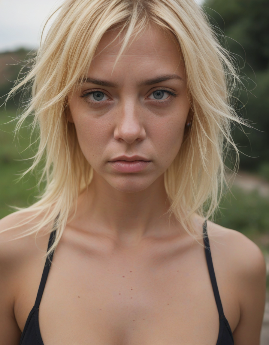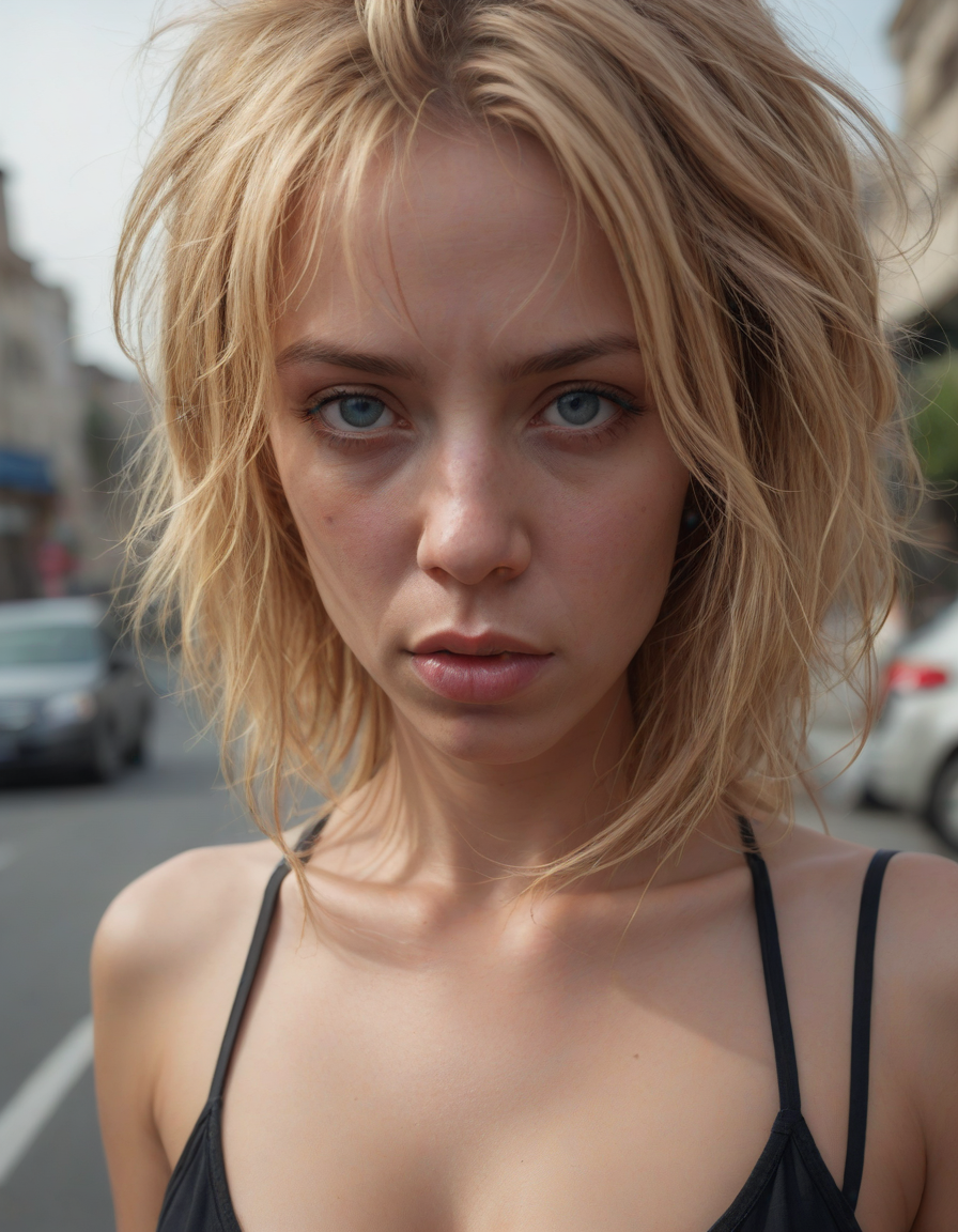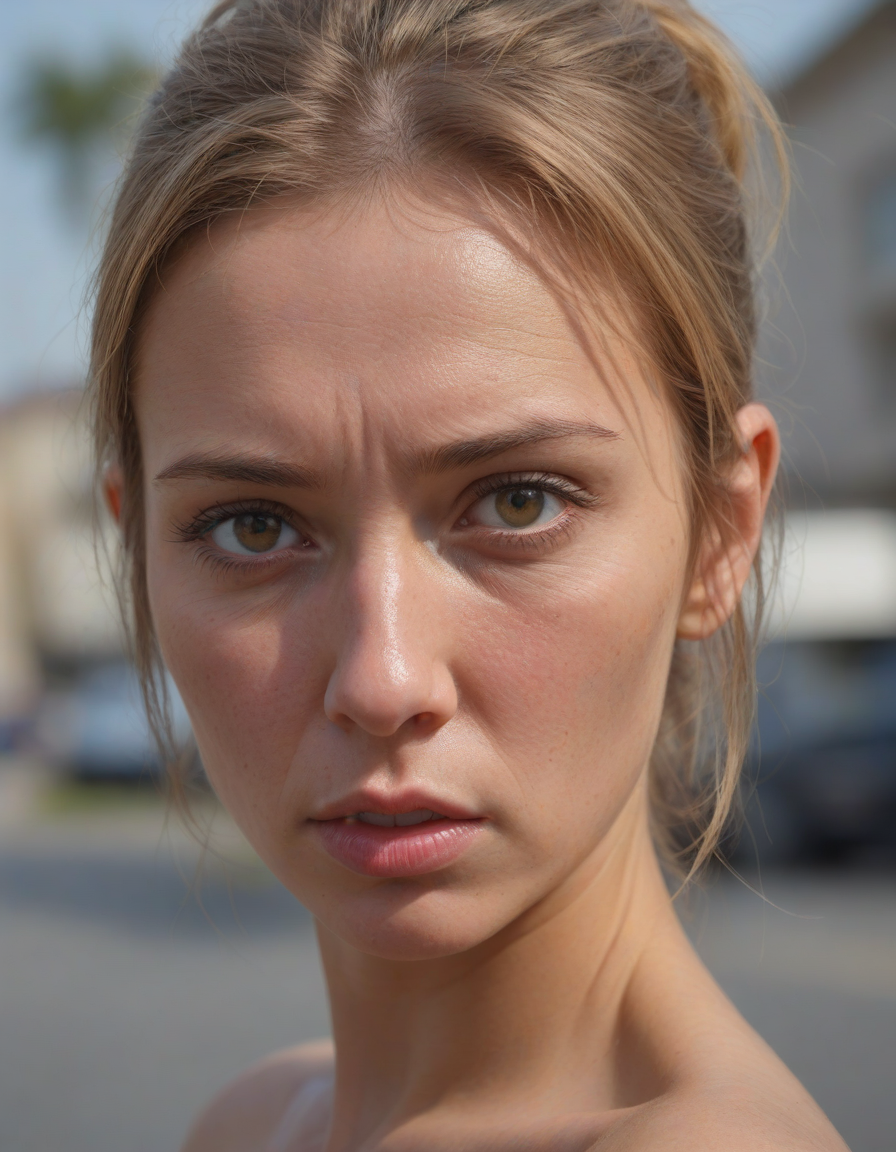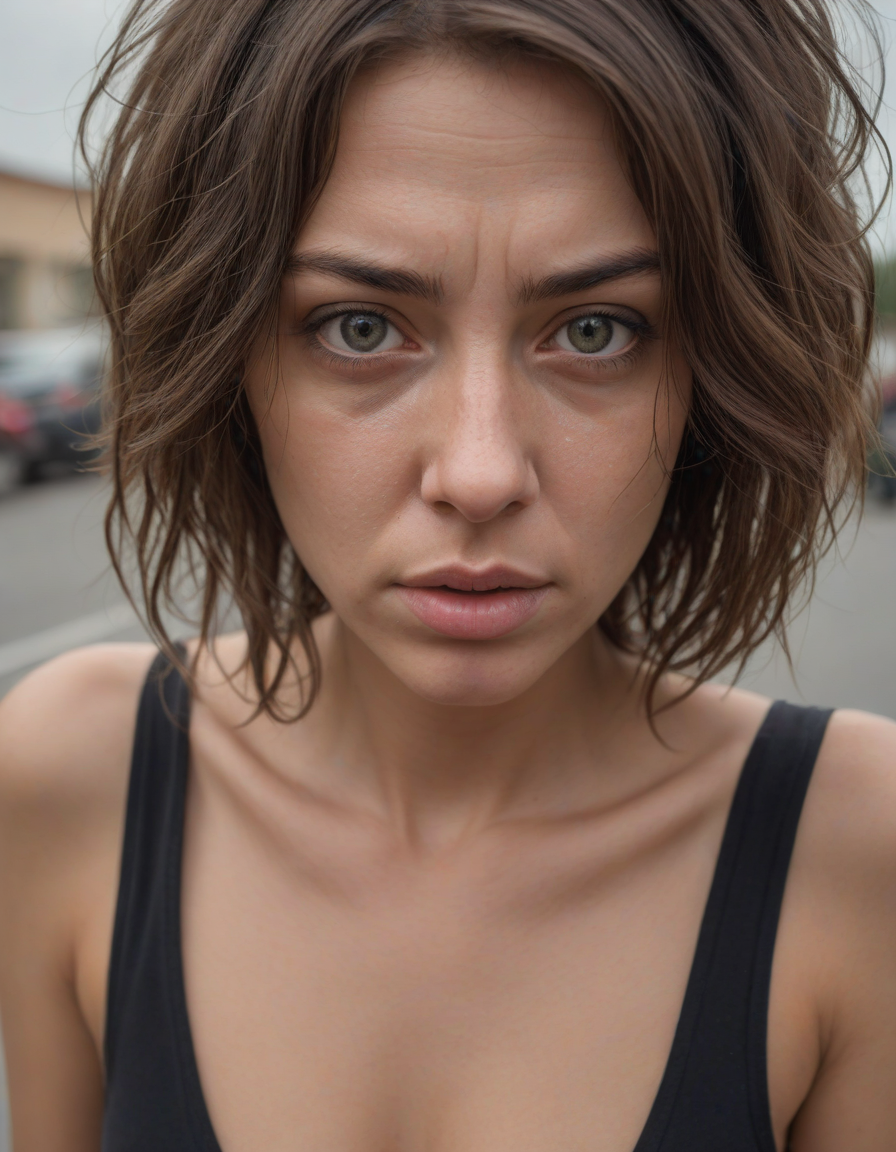 comic portrait, emotional, fisheye lens, lost in a trance, eyes glued to the horizon, Squinting in brightness, super zoom lens, prostitute, hooker, streetwalker, whore, skin blemishes, flaws,, furiously angry, active, sharply focused