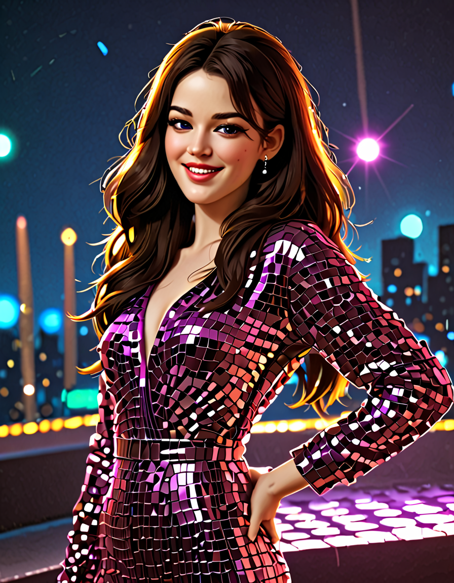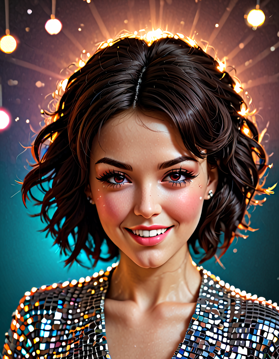 brunette, winking, disco ball ... (3 loras merged)