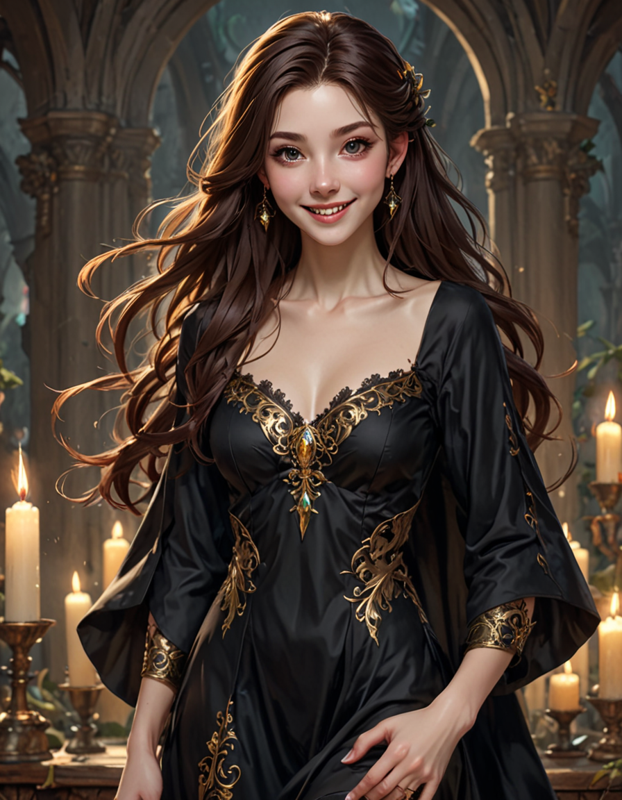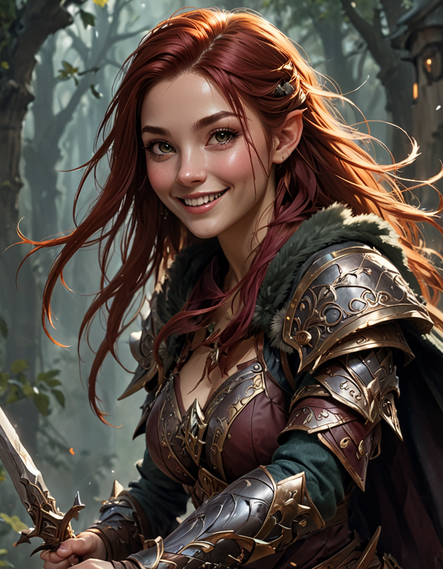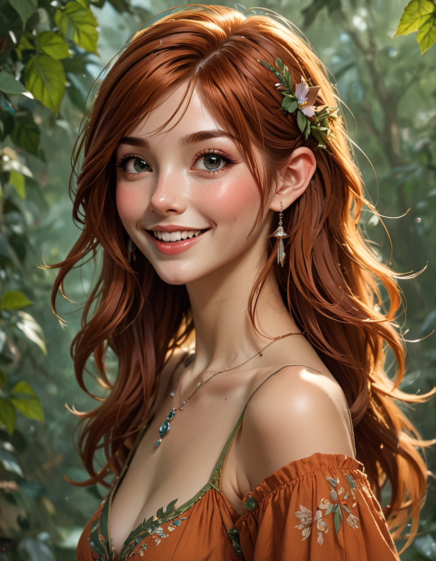Stern, stoic, unamused expression→Fae, spritely, mischievous expression