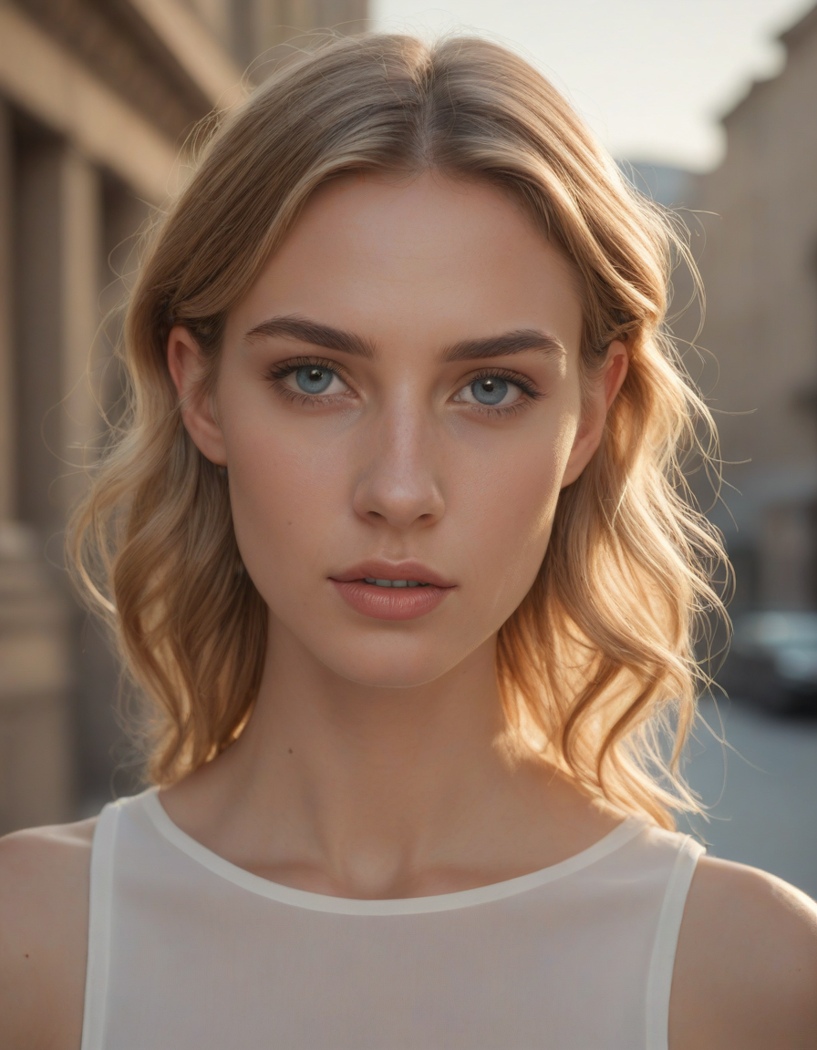 designer vintage wear, gold eye color, excited, greek god, Focused lights, Serene moonlight, Light blue eyes, fair skin tone, high cheekbones, soft jawline, slender nose, fine hair texture, oval-shaped face, subtle brow arches, rosy cheeks, delicate lip shape, smooth skin texture, minimal facial hair, light blonde or brown hair, prominent forehead, narrow face structure, long eyelashes, natural blush, defined cheek contours, graceful neck line, ethereal facial glow, wispy eyebrow texture, cool skin undertones, translucent skin sheen, elegant nose bridge, soft facial angles, harmonious facial symmetry