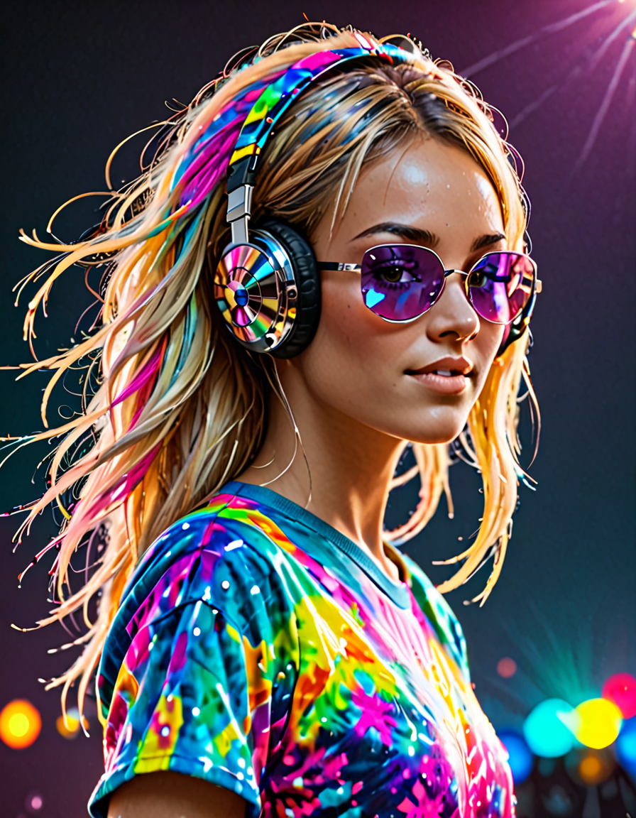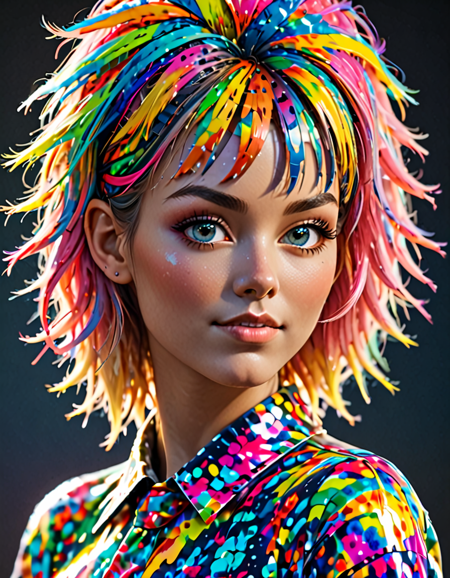 passionate, wearing colorful t... (3 loras merged)