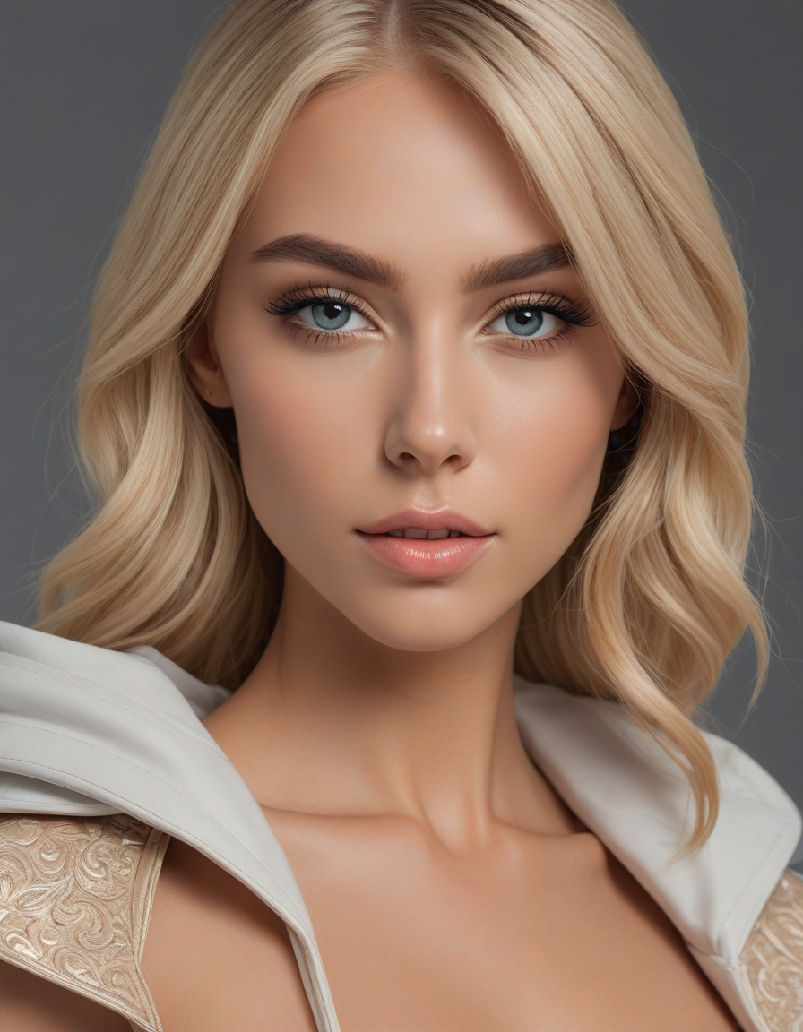 elegant, high waist tight overknee stiletto boots, looking at viewer, oval face shape, almond-shaped eyes, voluminous lashes, slightly arched eyebrows, narrow nasal bridge, rounded nose tip, symmetrical nostrils, full lips, pronounced cupid's bow, slightly fuller lower lip, defined cheekbones, rounded chin, smooth complexion, softly contoured jawline, balanced facial proportions, symmetrical features, gently curved eyelids, soft brow ridge, harmonious cheek to jawline transition, subtle philtrum, delicate ear lobes, straight blonde hair, clear skin, hooded eyelids, light pink lip color, slightly pouty expression, casual pose with hand on face, slight head tilt, indoor lighting, Light blue irises, Medium-thickness eyebrows, Softly angled eyebrows, A hint of freckles across the nose and cheeks, Natural makeup, Gentle frown lines between the eyebrows, Soft nasolabial folds, Smooth forehead, Subtle dimple on the chin, Clear facial contour without distinct shadows, Even skin tone with a hint of natural pink undertones, Slightly rosy cheeks, Tapered jawline, Fine hair texture with gentle waves, Youthful appearance with soft facial features, Holding a sword in both hands in a confident pose, detailed grip, detailed fuller, detailed pommel, detailed blade, detailed edge,