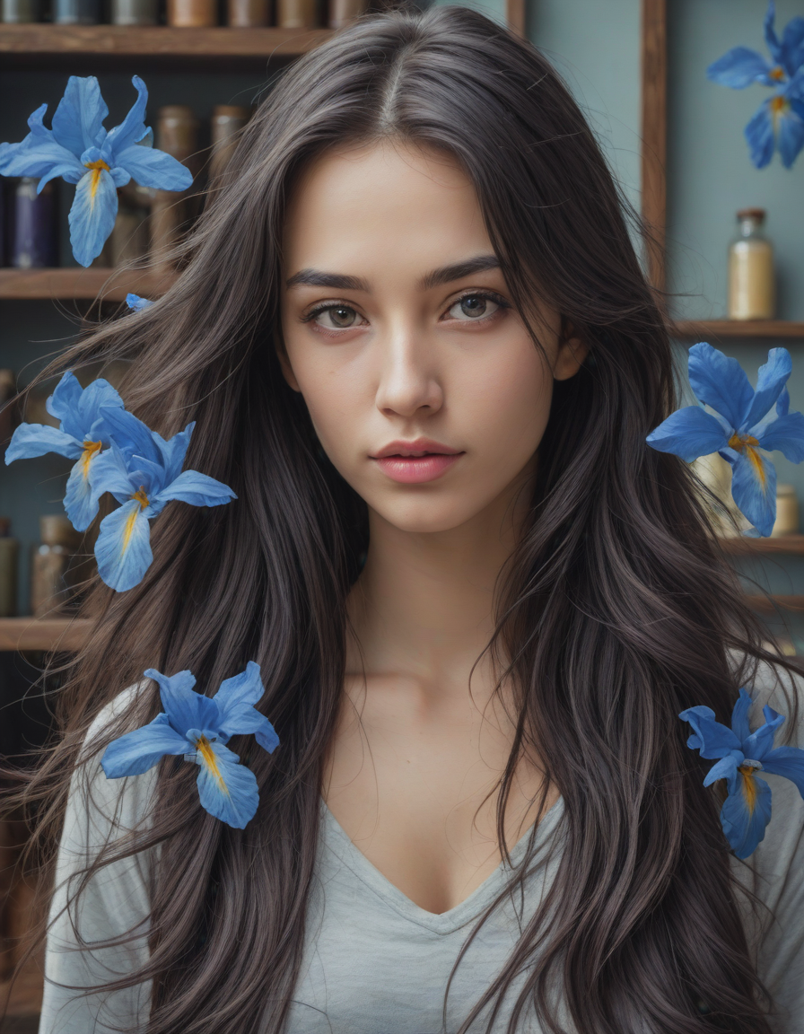 briskly walking towards, light blue colored iris pigment, light blue colored eyes, blue-iris-color, blue-eye-color,, Vivid oil paints