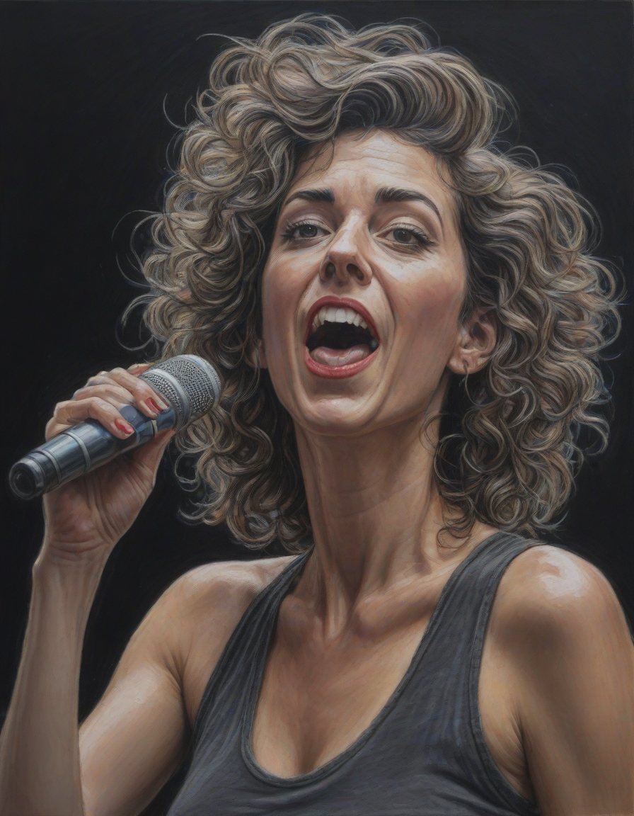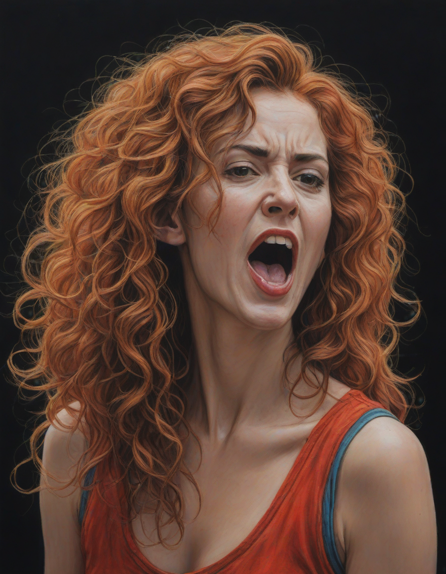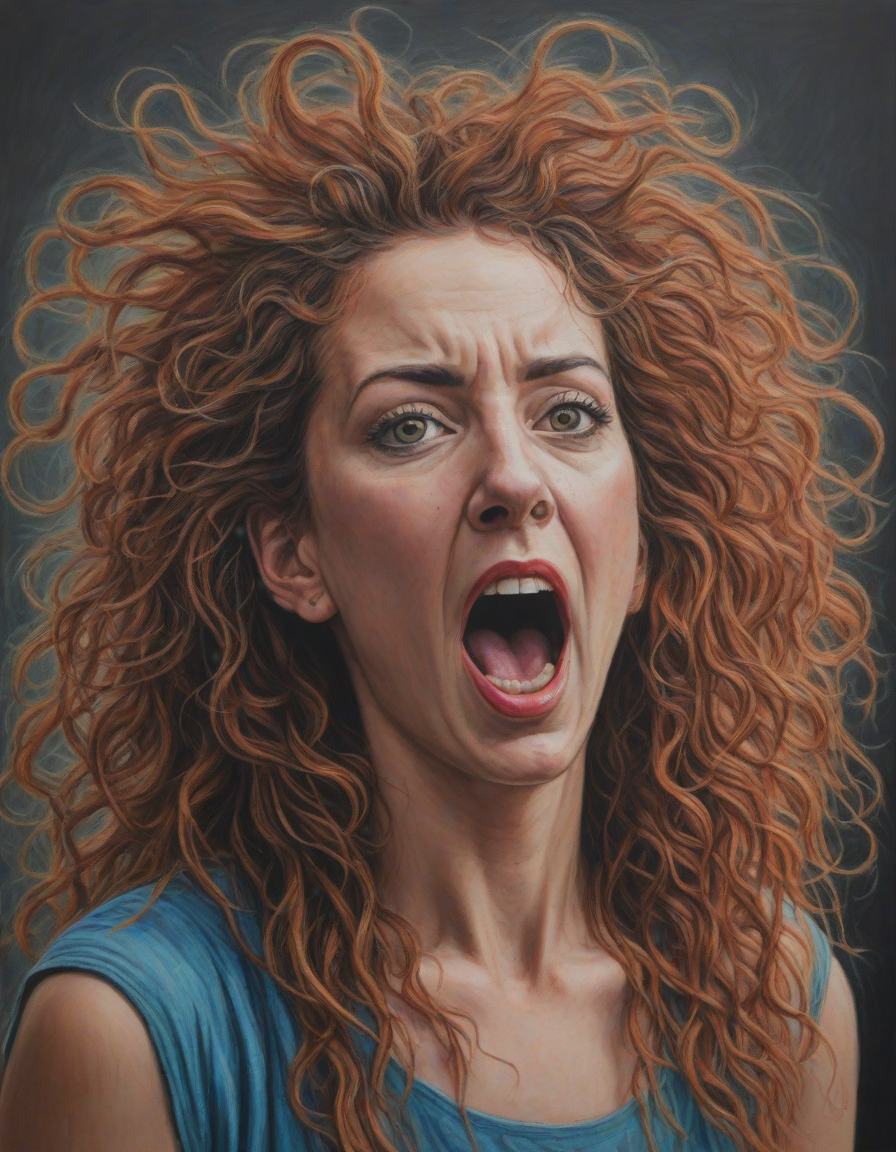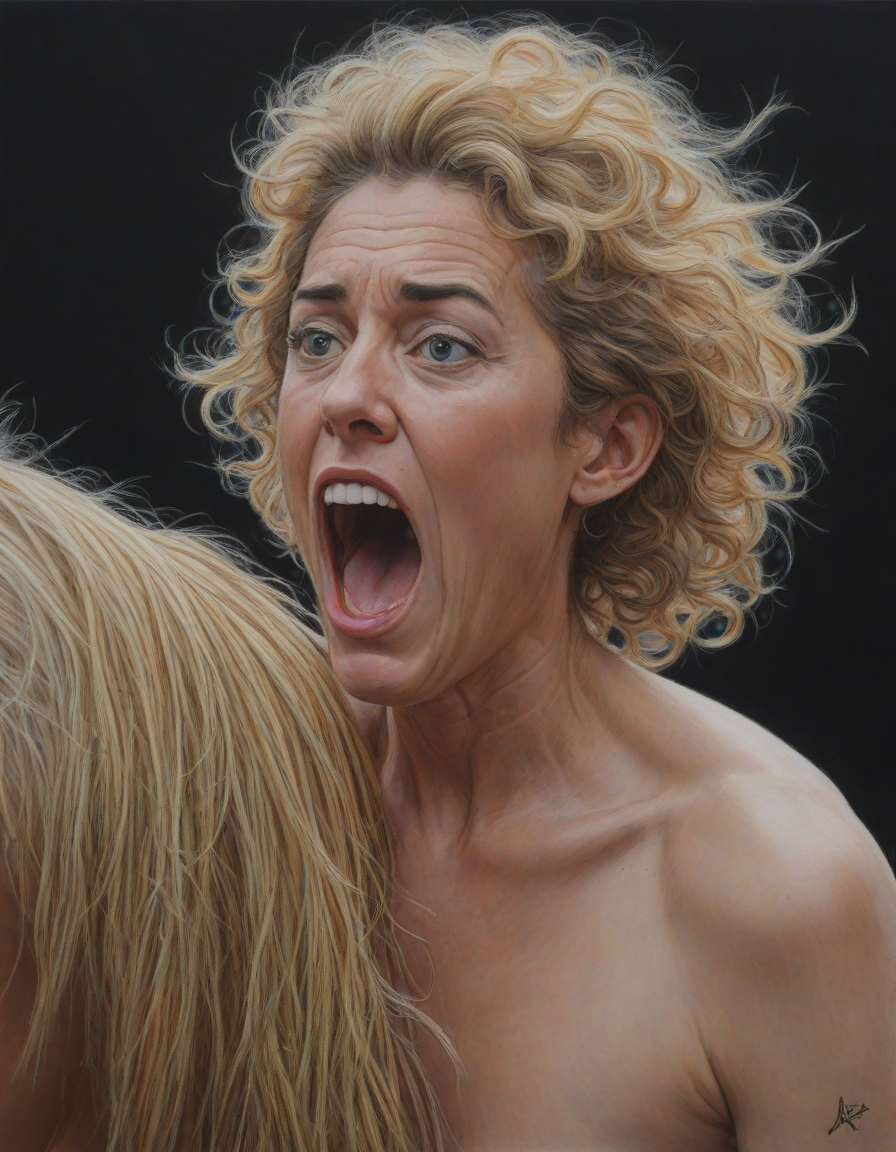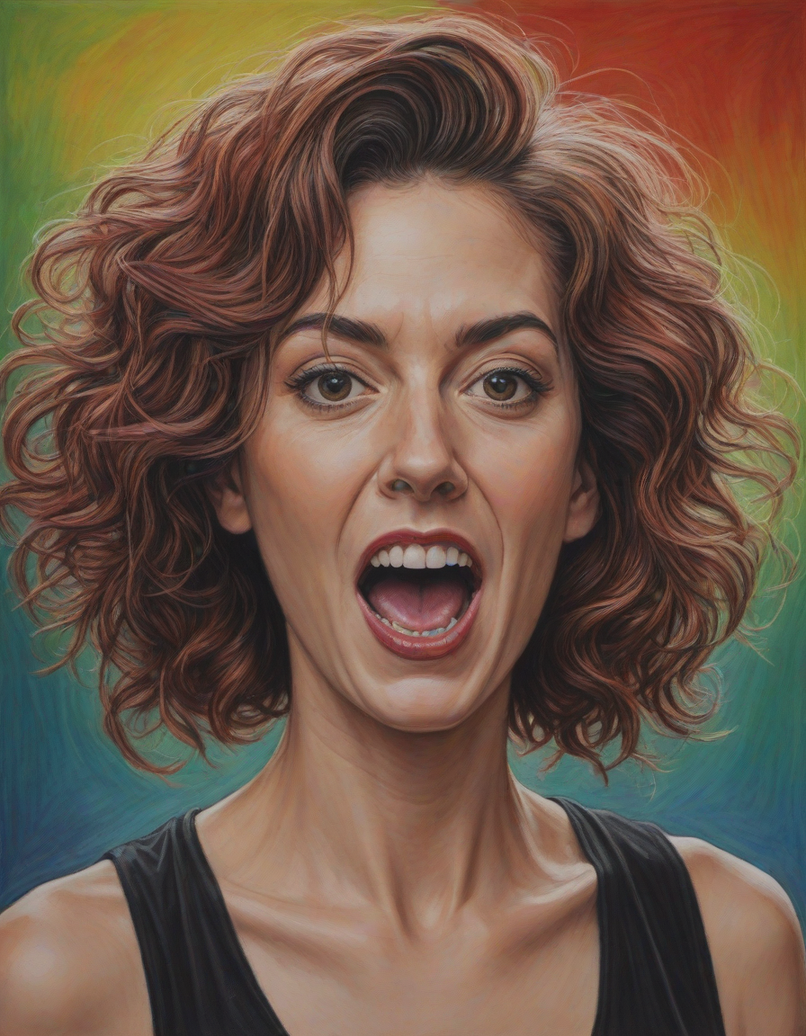 Hair-raising screech echoing, oil pastel portrait, on stage