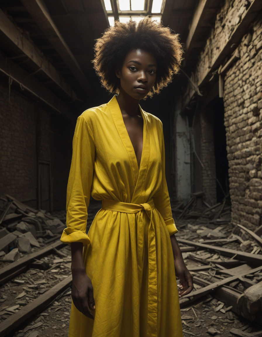 heavy inking, Blinding light highlighting mysterious figure, yellow