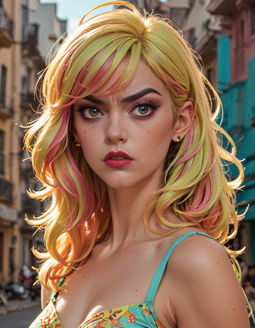 realistic oil painting, detailed 3d render→comic book style with bold outlines and flat colors