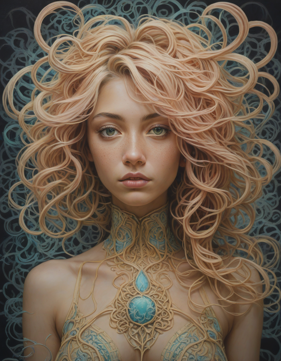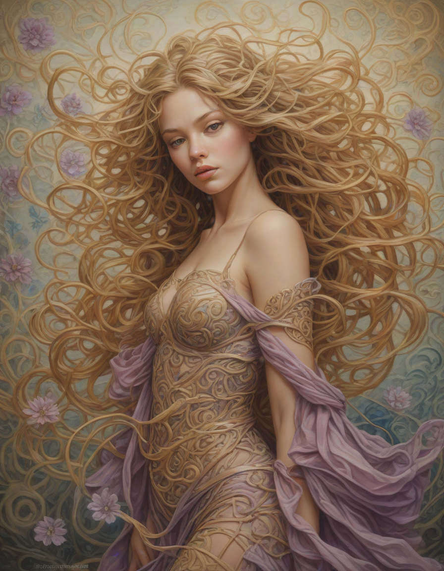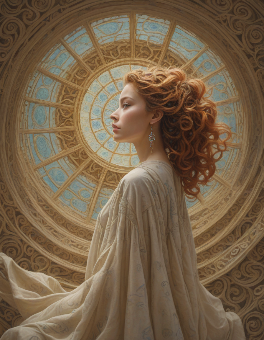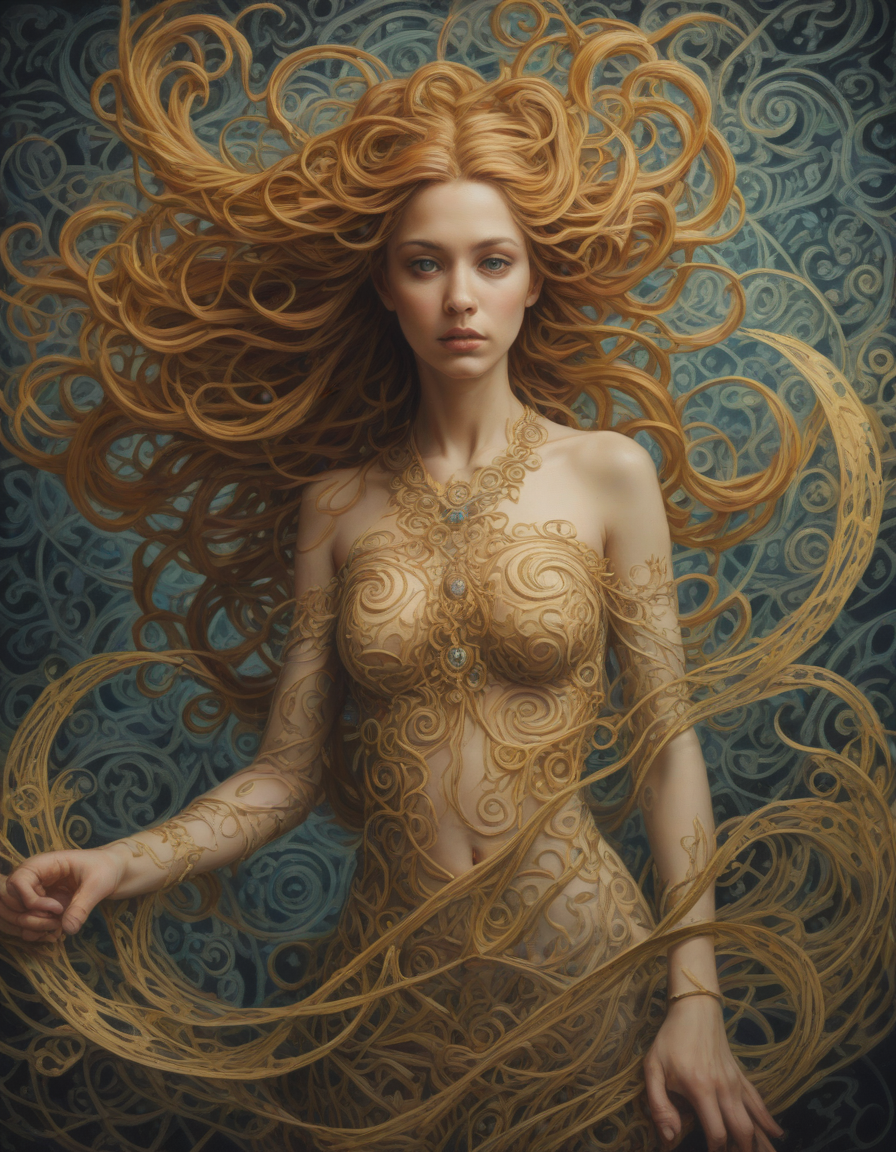 Whirling maelstroms of radiant energy, decorated with carvings and etched with strange symbols, Velvet hair cascades in buoyant tendrils down delicate shoulders, glinting like spun gold in a chink of sunlight, confused, pastel impressions on rough paper, view from above