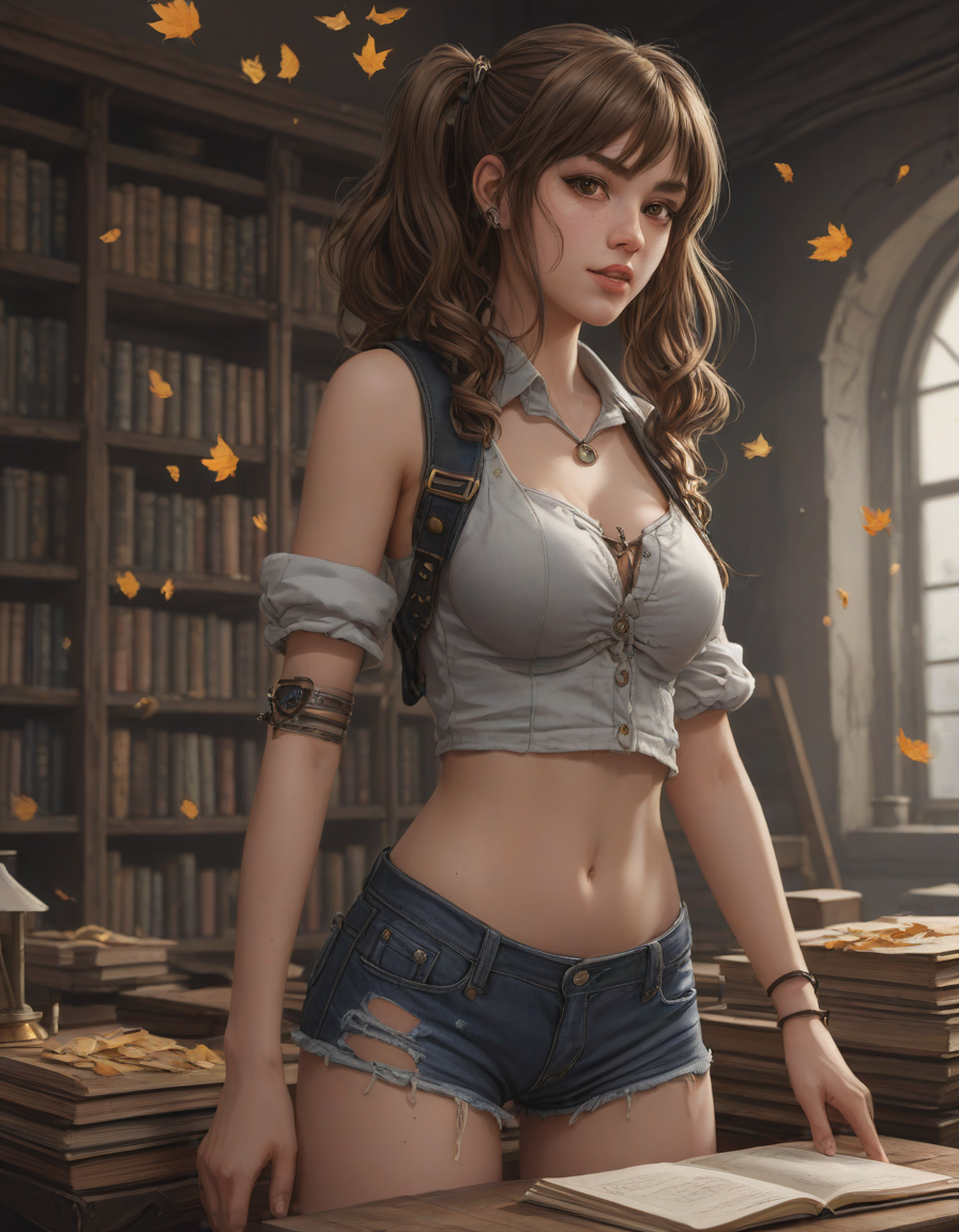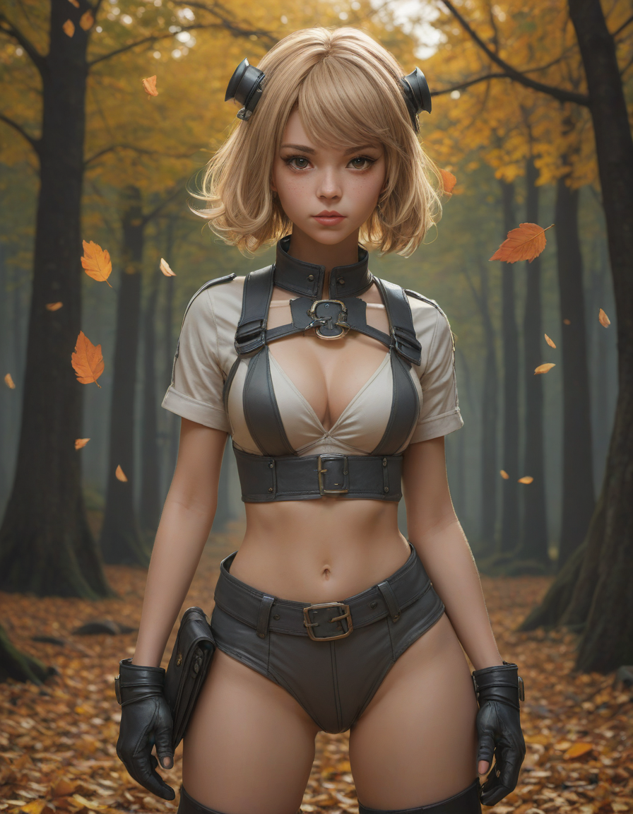 banshee, falling leaves, wario, very attractive, brunette, piercing stares, bell haircut