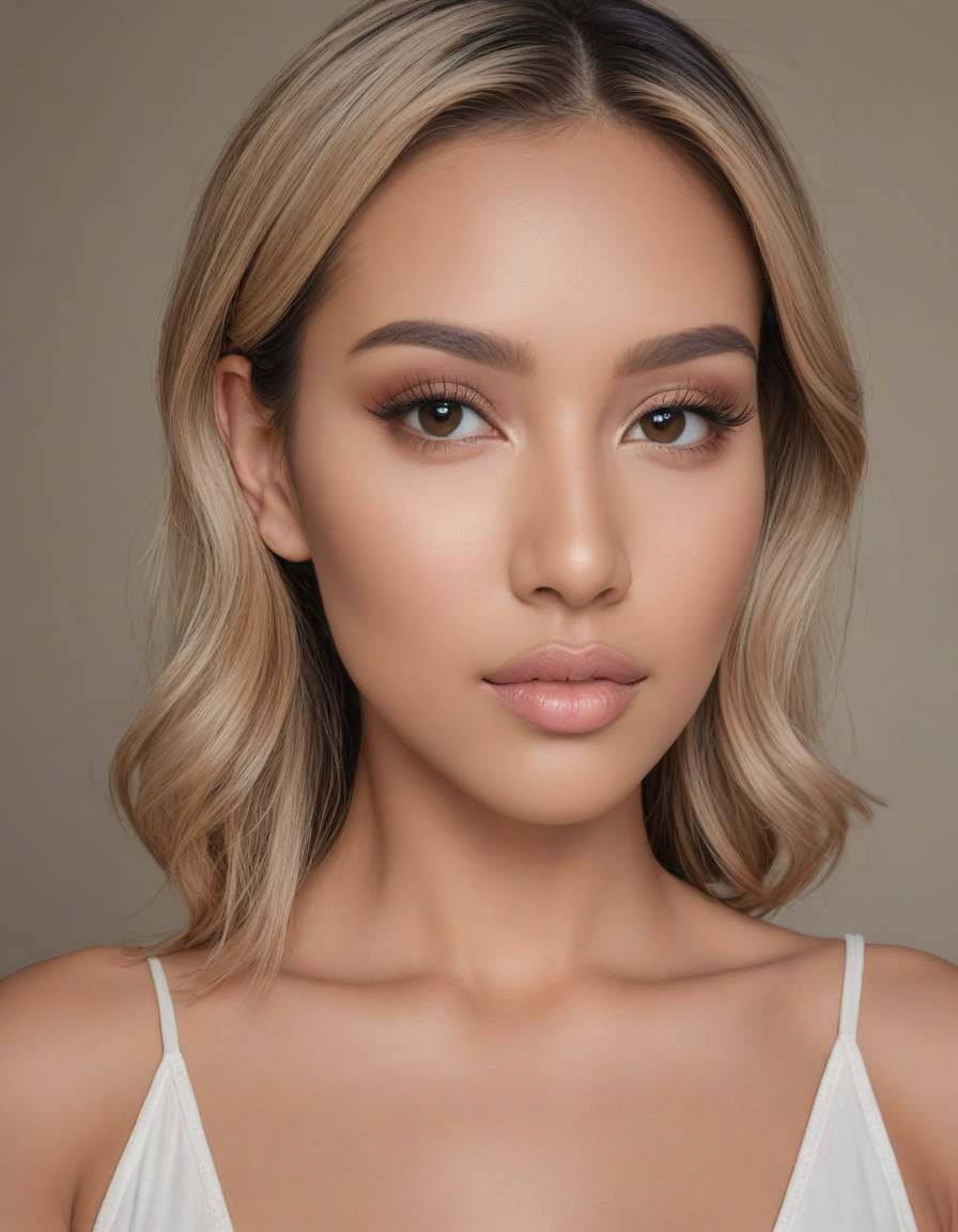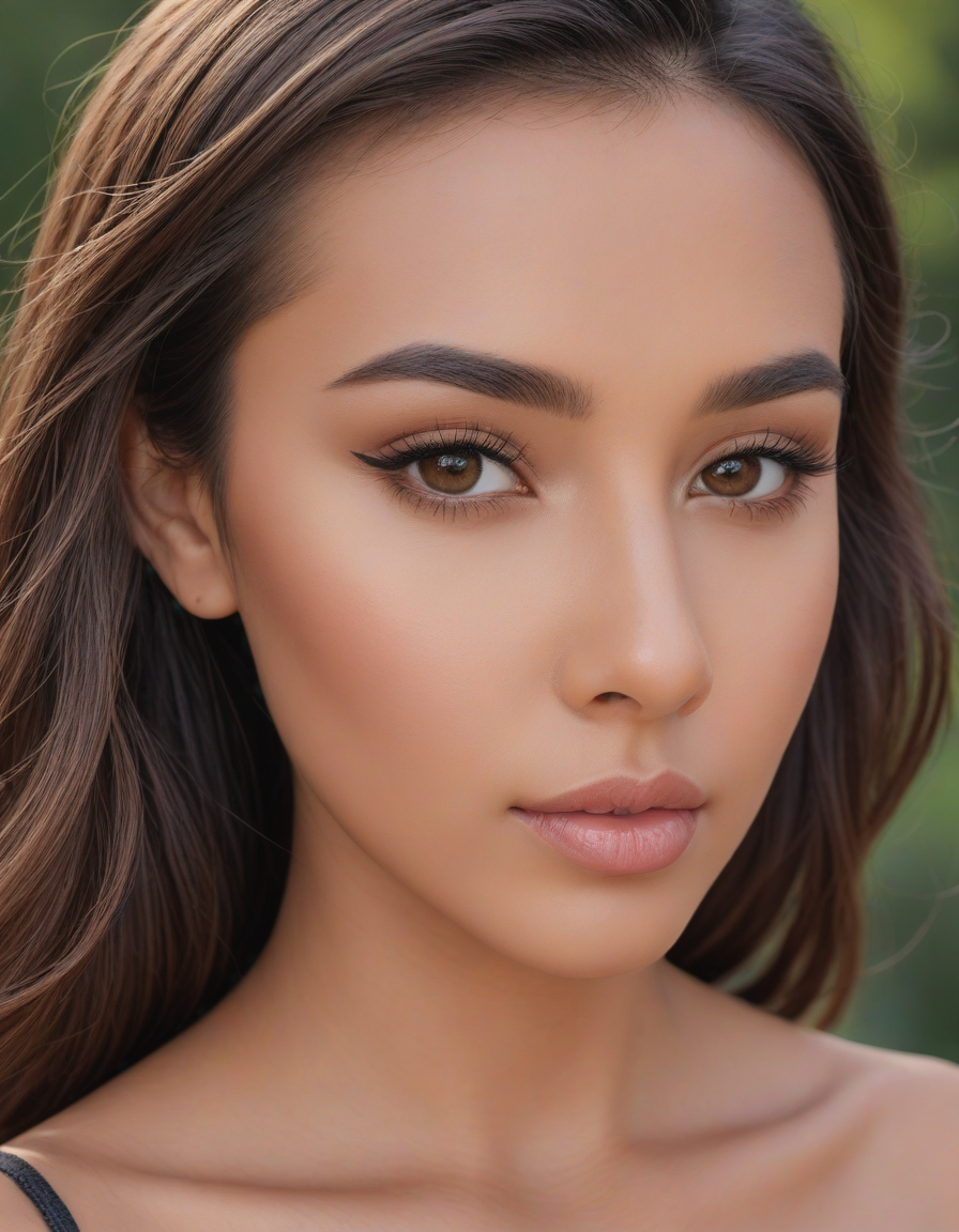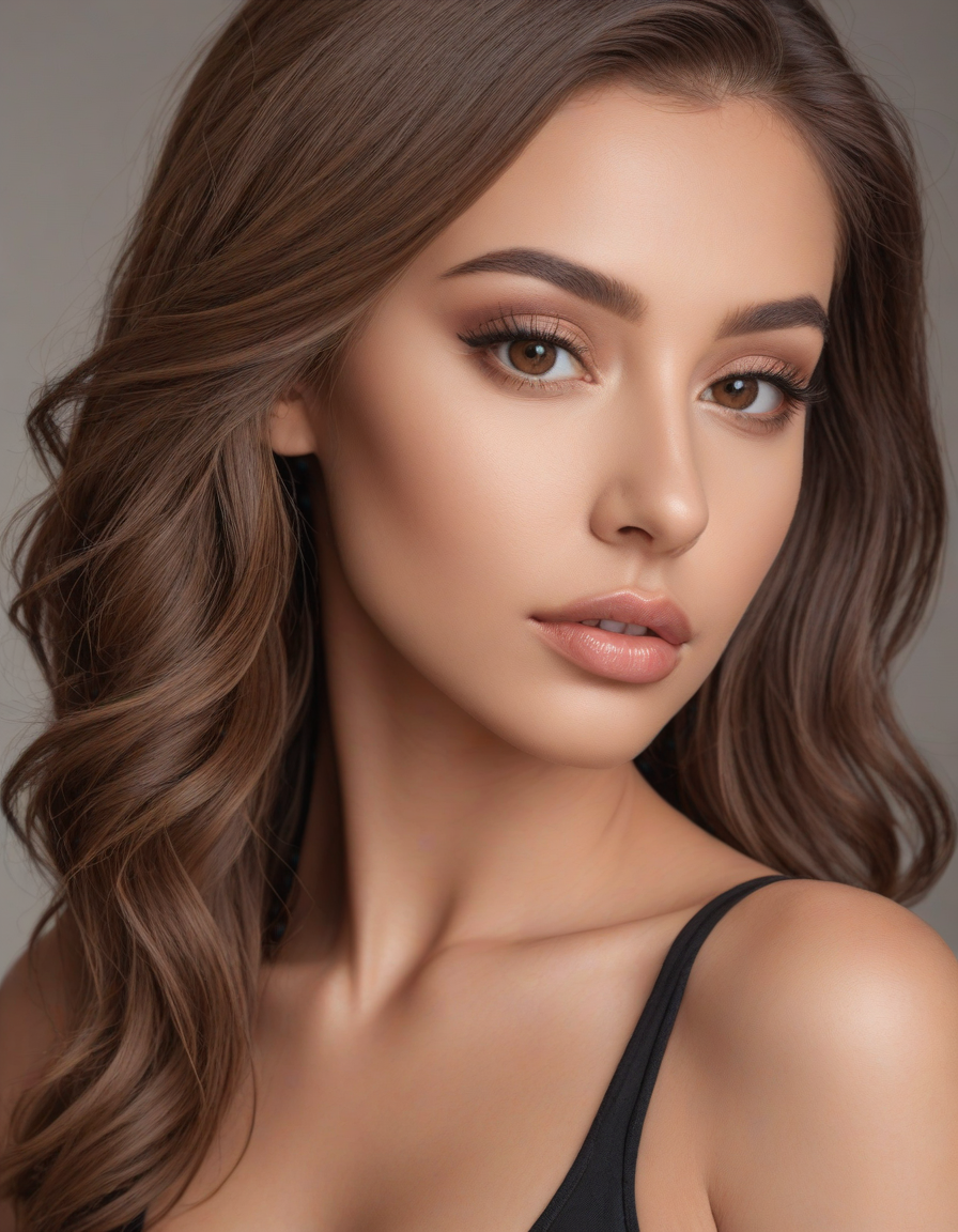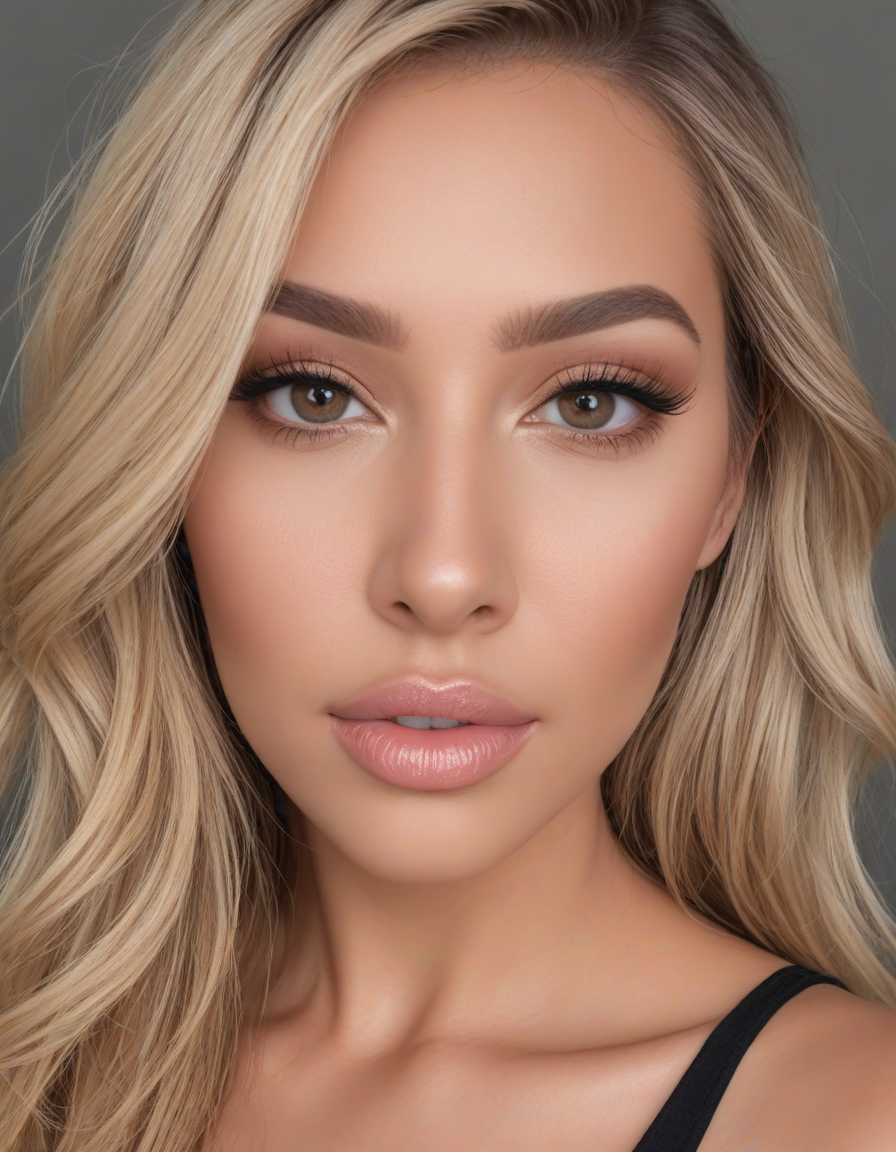 18yo, 18 year old, Glamorous full-coverage foundation, high-gloss lip finish, dramatic eyelash extensions, deep contouring, bronzed skin glow, smoky eye effect, nude lip shades, defined eyebrow arches, shimmering eyeshadow, luxurious false lashes, precision lip contouring, radiant cheek highlight, voluminous hair effect in makeup, plump lip enhancement, classic winged eyeliner, soft-focus skin finish, meticulous face sculpting, sparkling eye accents, meticulous eyebrow definition, vibrant blush placement, sultry eye makeup, flawless skin illusion, high-definition makeup, polished aesthetic finish, celebrity-inspired glamour, egirl makeup, dolly makeup, , unparalleled masterpiece, lips pursed in determination, love