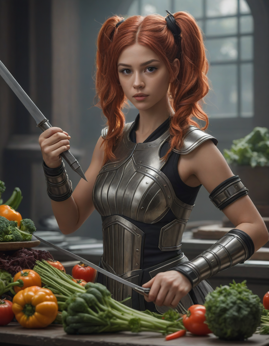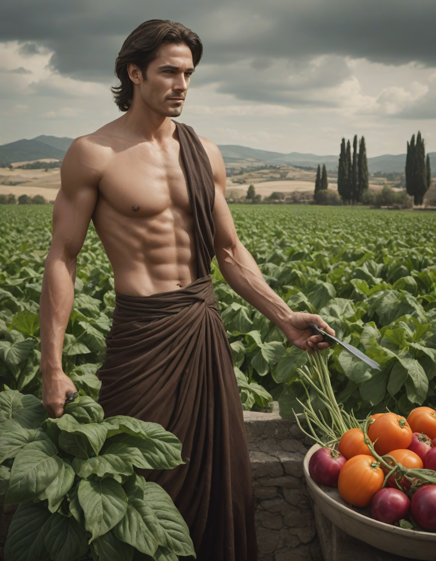 greek god, cutting vegetables, Tron-like, sarcastic ridiculing