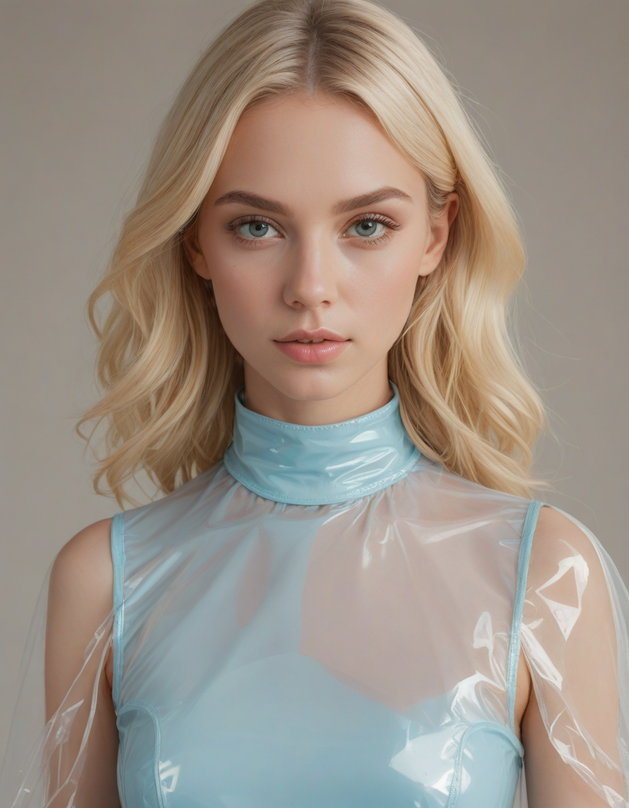 Wide Skirt, wide ballgown hem, a line skirt, petticoat skirt, , looking at viewer, shiny, glossy PVC outfit, (shiny glossy PVC cloth textures), clothes made from pvc, plastic, oval face shape, almond-shaped eyes, voluminous lashes, slightly arched eyebrows, narrow nasal bridge, rounded nose tip, symmetrical nostrils, full lips, pronounced cupid's bow, slightly fuller lower lip, defined cheekbones, rounded chin, smooth complexion, softly contoured jawline, balanced facial proportions, symmetrical features, gently curved eyelids, soft brow ridge, harmonious cheek to jawline transition, subtle philtrum, delicate ear lobes, straight blonde hair, clear skin, hooded eyelids, light pink lip color, slightly pouty expression, casual pose with hand on face, slight head tilt, indoor lighting, Light blue irises, Medium-thickness eyebrows, Softly angled eyebrows, A hint of freckles across the nose and cheeks, Natural makeup, Gentle frown lines between the eyebrows, Soft nasolabial folds, Smooth forehead, Subtle dimple on the chin, Clear facial contour without distinct shadows, Even skin tone with a hint of natural pink undertones, Slightly rosy cheeks, Tapered jawline, Fine hair texture with gentle waves, Youthful appearance with soft facial features, wearing complete set of armor, wearing full armor, Wearing chest armor, wearing leg armor, wearing feet armor, wearing bracer, wearing pauldrons,
