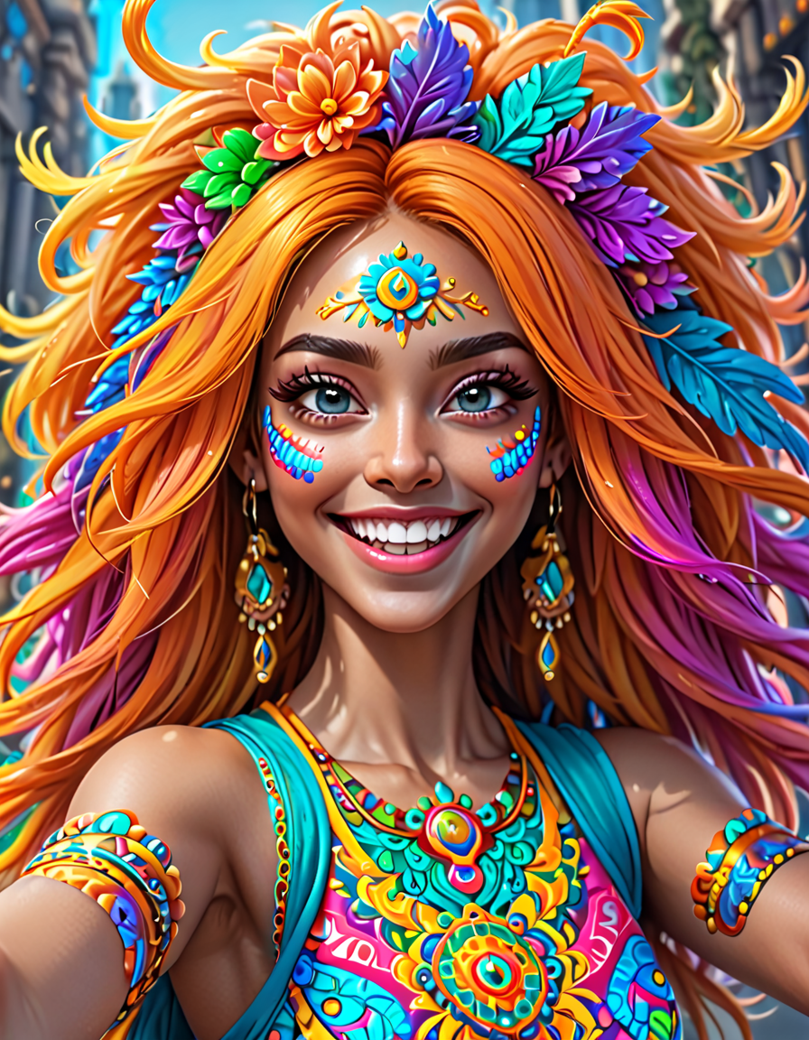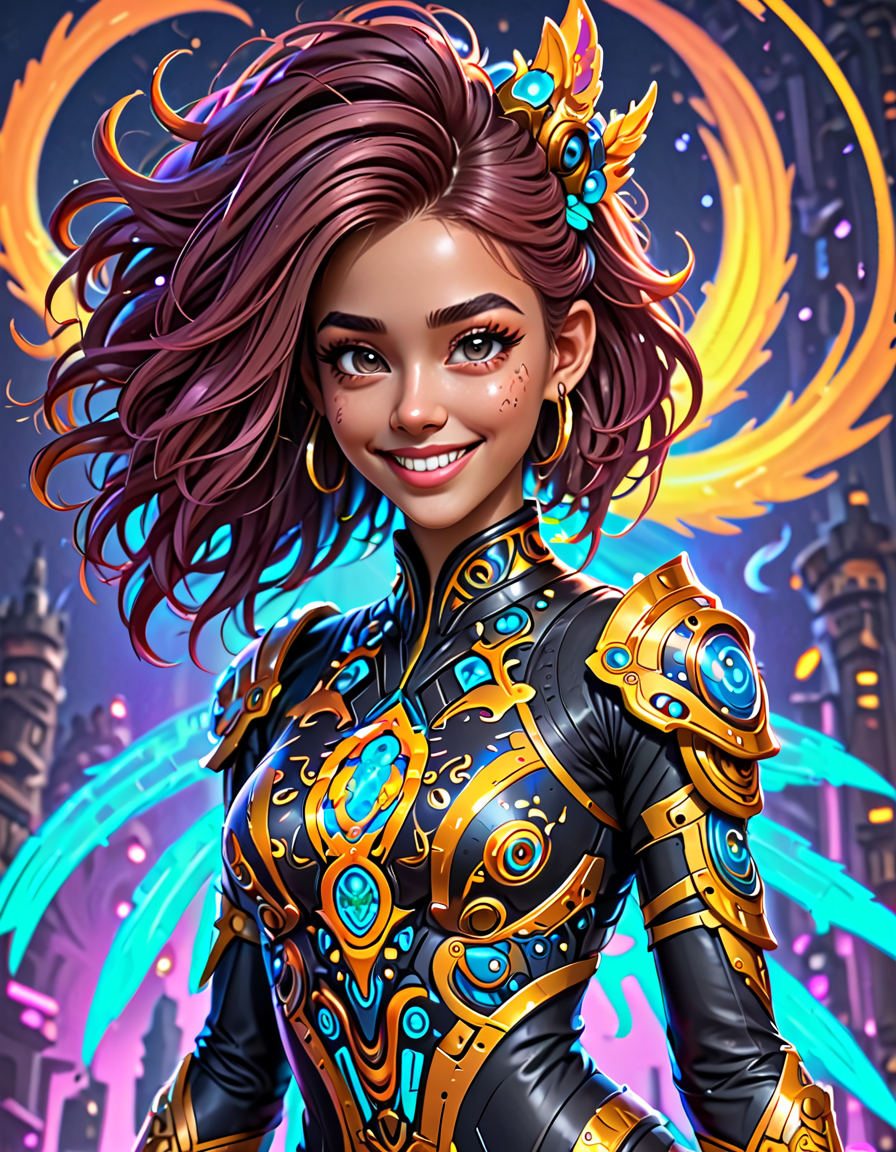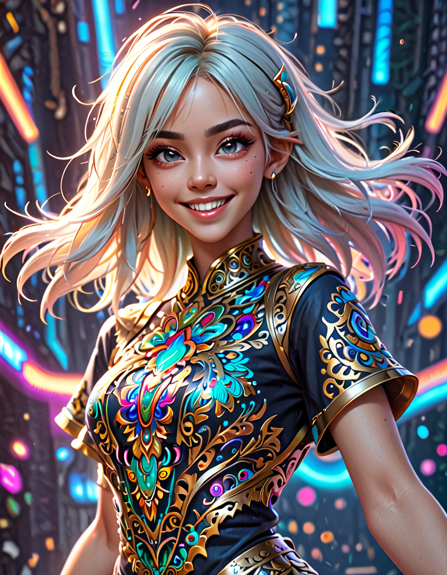 happy, futuristic neon glow, h... (6 loras merged)