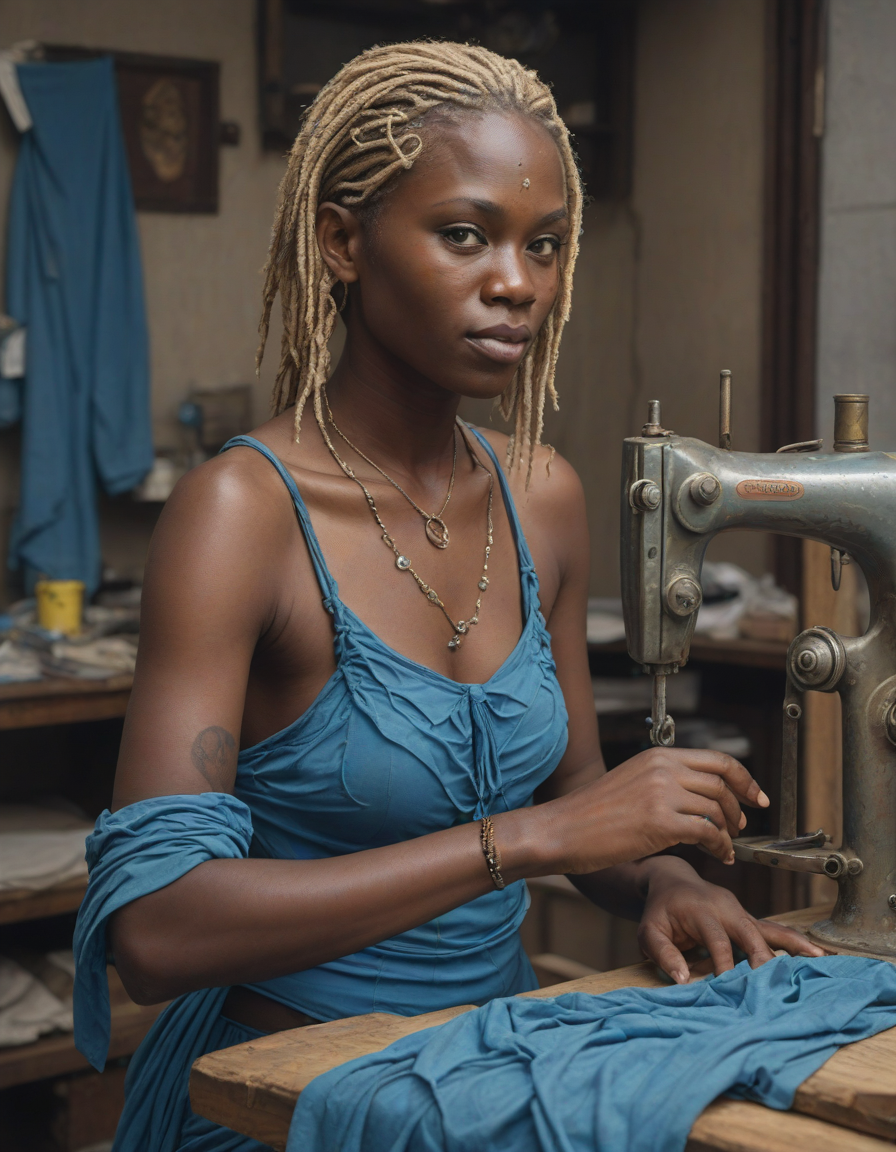 blue, crystal sculpture, superhero, scenic mesa, Daring piercings, vibrant tattoos, sparkling, ogre, captivating, Grizzled and rugged, unraveling in a splendid chaos