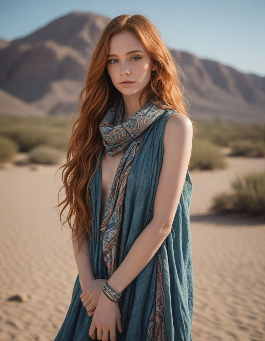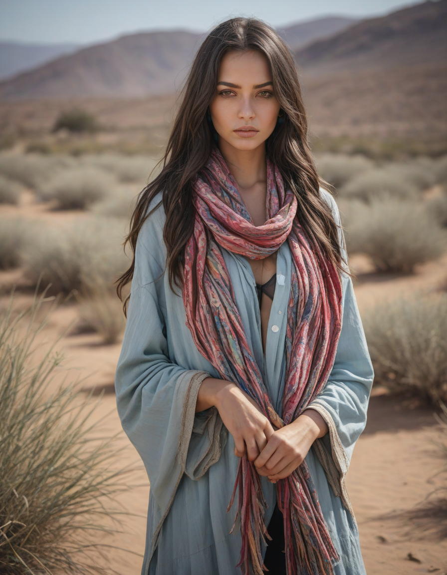 active, weilding a one-handed weapon in both hands, one-handed weapon, weapon, , An exquisite arrangement of colors that will make you feel, sacred geometry, a woman with long flowing hair draped over one shoulder and a fasciantingly vibrant scarf wrapped around her neck, model, gritty reality, Highschool_Senior, 18yo, 19yo, 20yo, 18-year-old, 19-year-old, 20-year-old,, light blue colored iris pigment, light blue colored eyes, blue-iris-color, blue-eye-color,, Eyes glint with mischief, in the desert