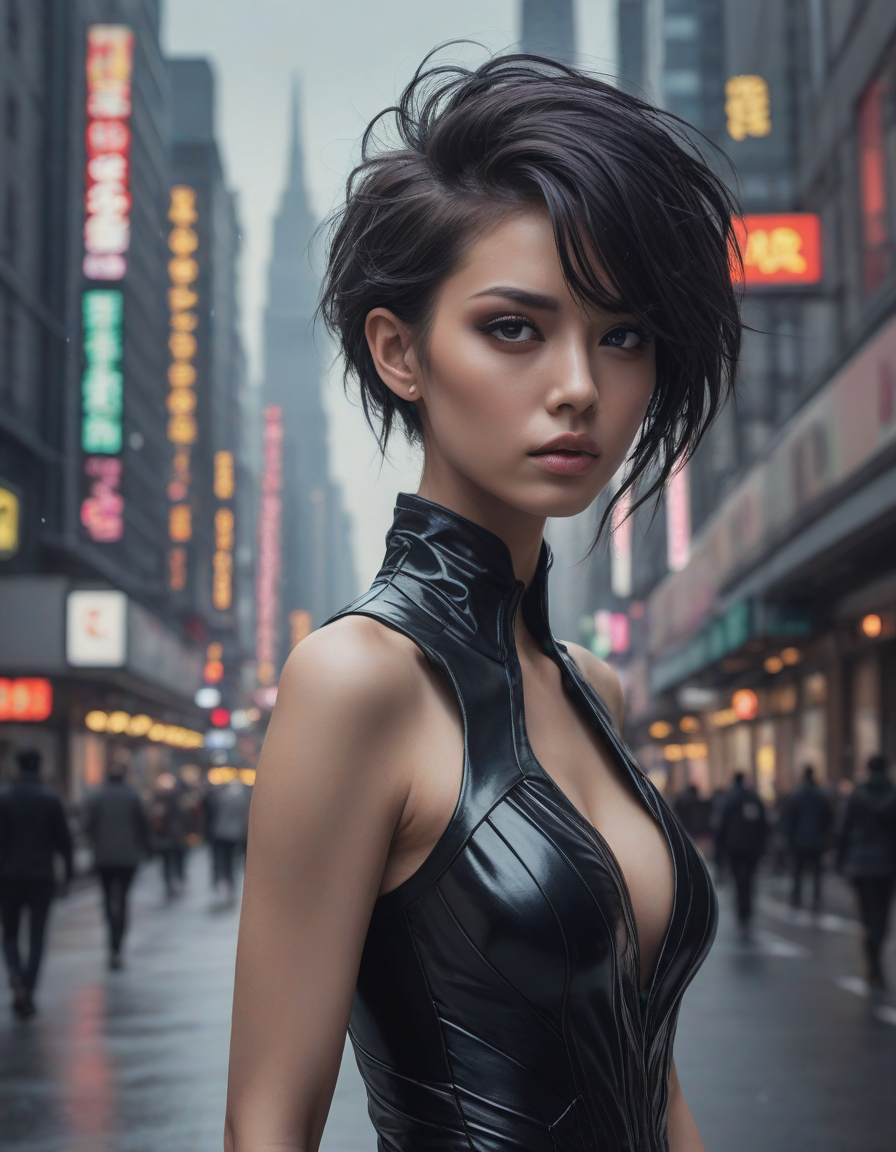 mysterious enchantress, a stunning, breathtaking beauty, Cold hard reality, Peering into the void, sleek, futuristic fashion