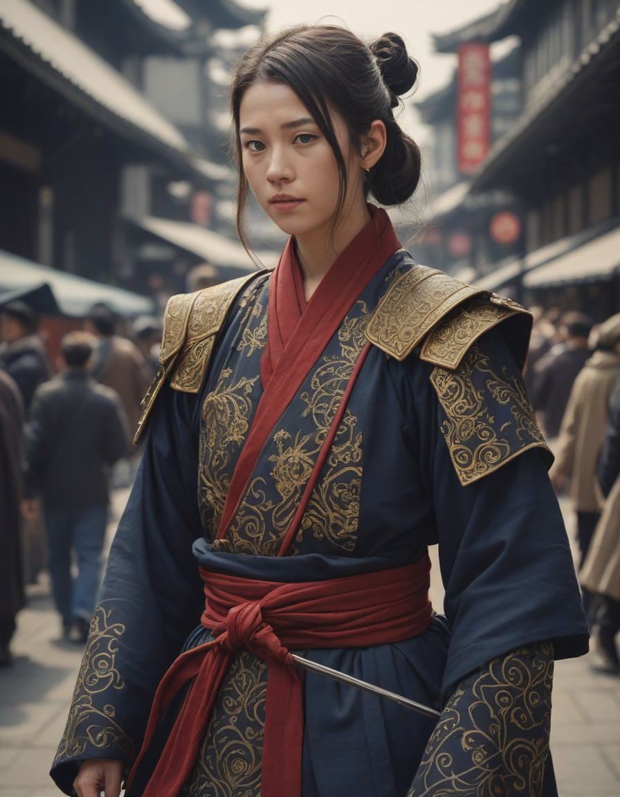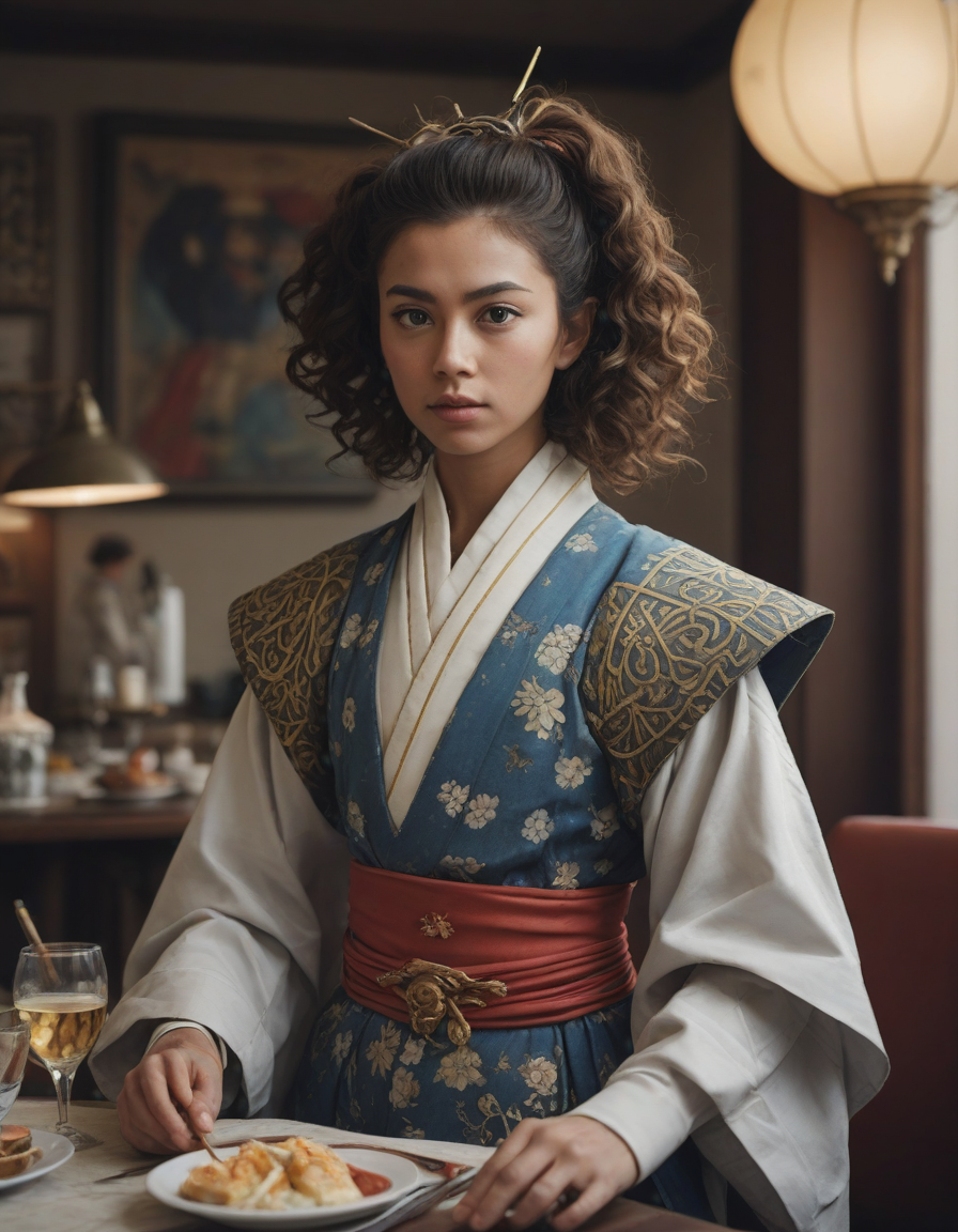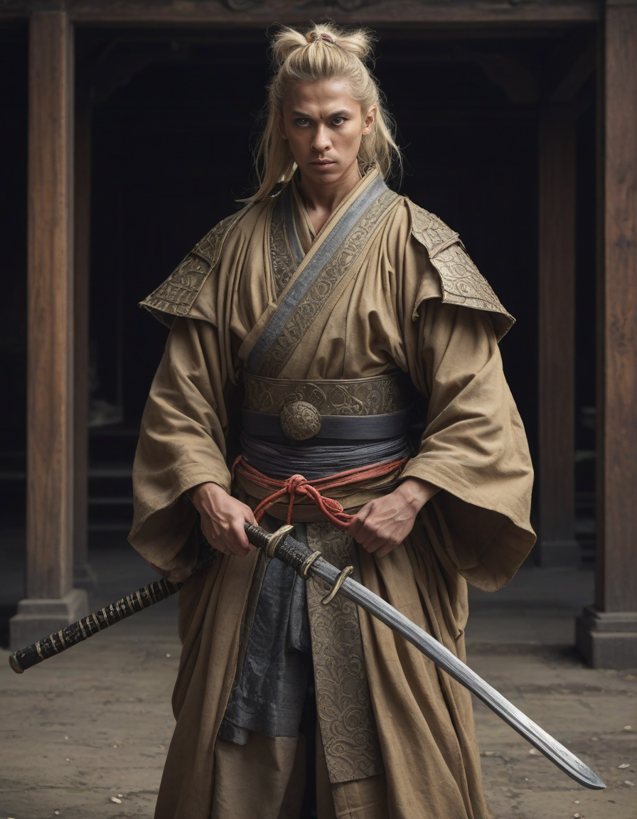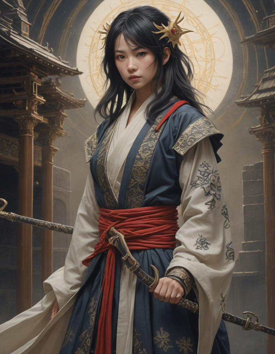 celestial, Bizarrely, dressed as a samurai, resplendent intelligence