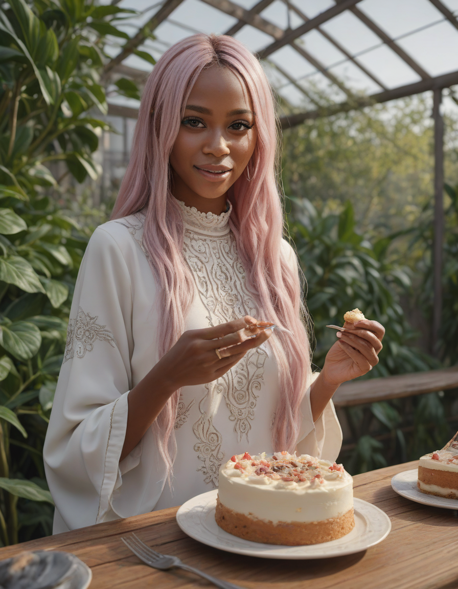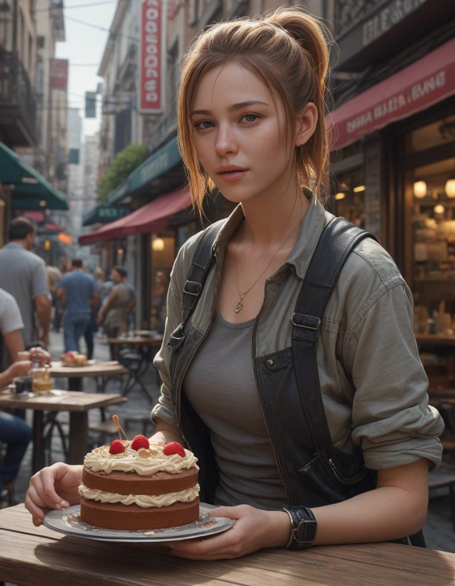 rich, detailed open-world environment, Photorealistic portrait, eating cake